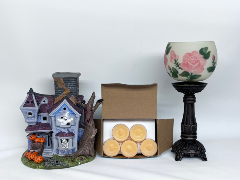 Lot # 35 - PartyLite Ghostly Tealight House, Rose Tealight Lamp, and Candles Starting Bid: $ 5.00 Bids: This sale will end in: |