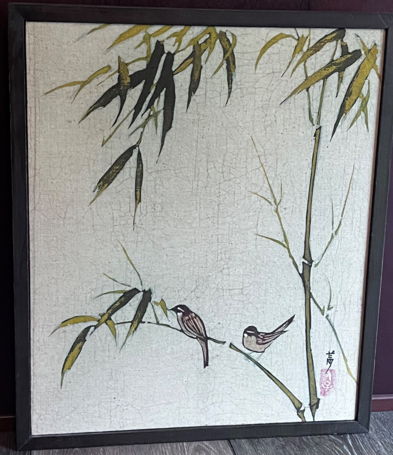 Lot # 14 - Hand Painted Chinese Plum Blossom Fan in Redwood Box Frame. Starting Bid: $ 5.00 Bids: This sale will end in: |