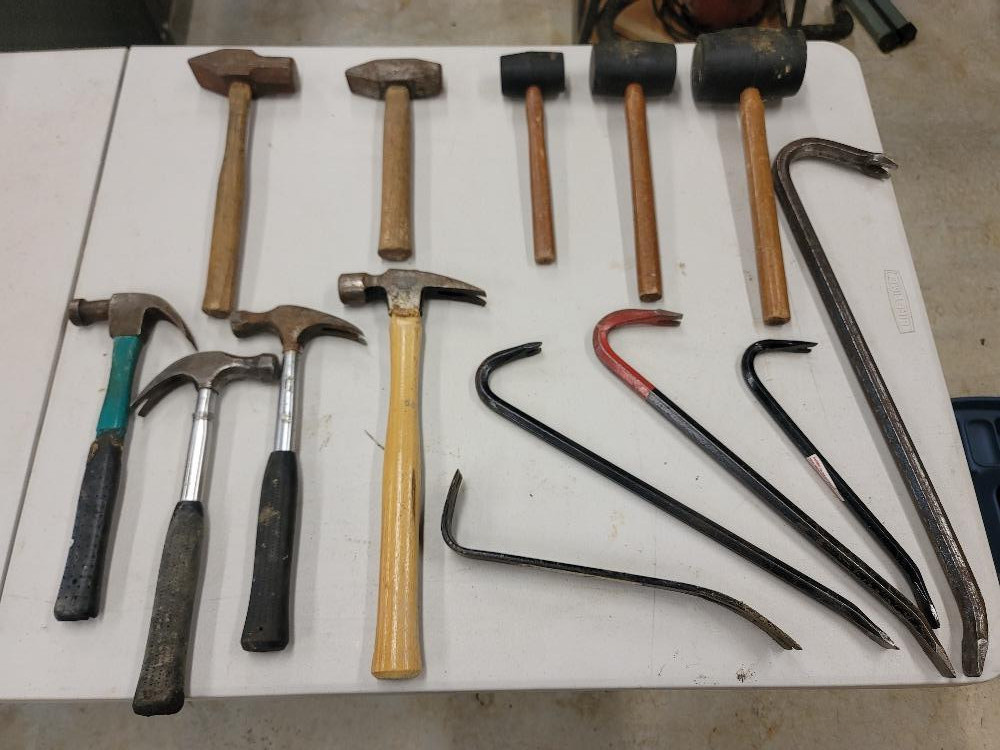 A Bucket Full Of Hammers, Mallets, Crowbars & Flat Bar A giant assortment of all things to hammer and pull with in a 5 gallon bucket 14 pieces in all!