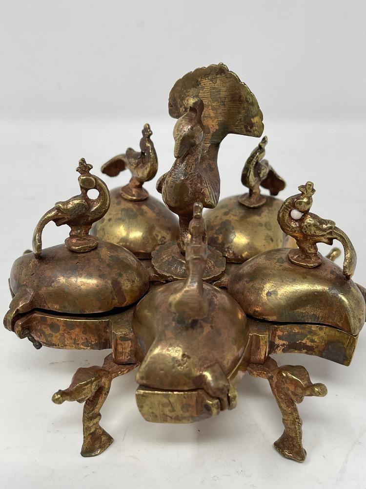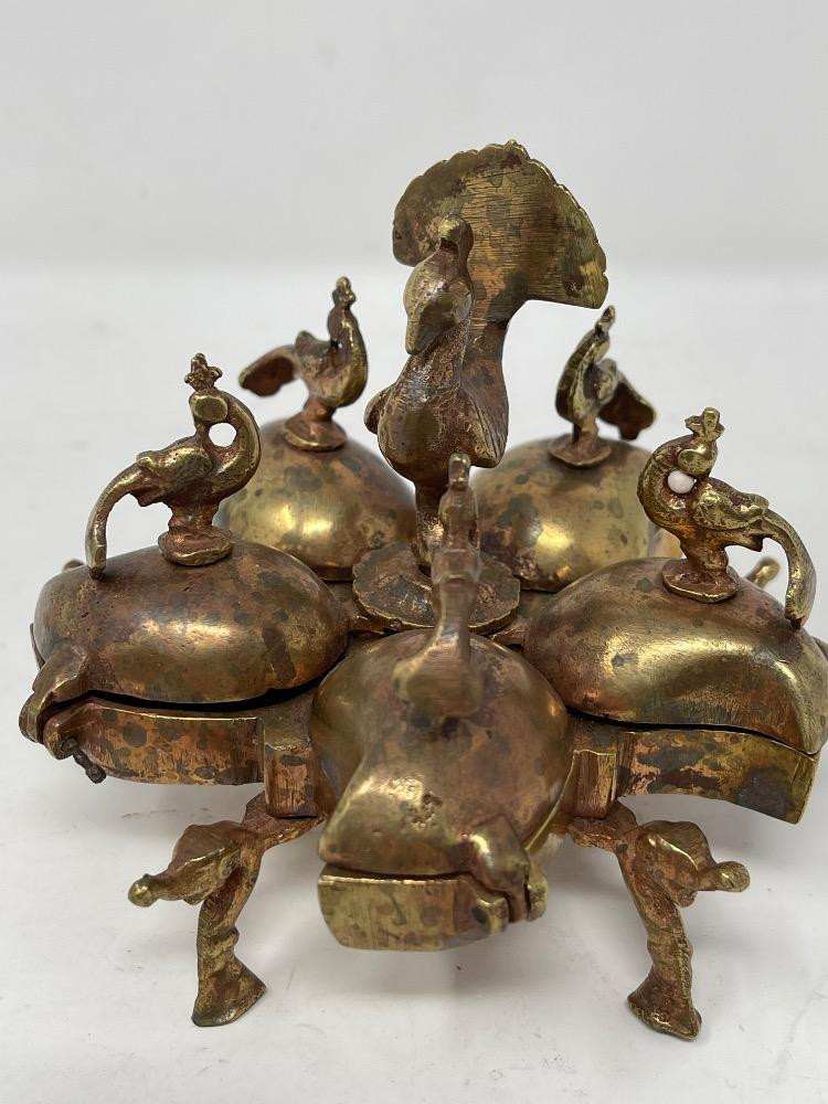 Lot # 6 - Peacock Brass Indian Cum Cum Holder