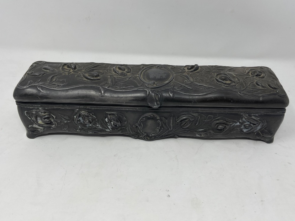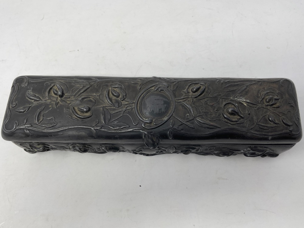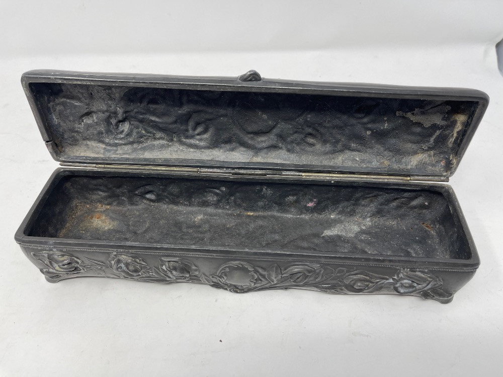 Lot # 7 - Floral Design Iron Pencil Box - Engraved Commencement