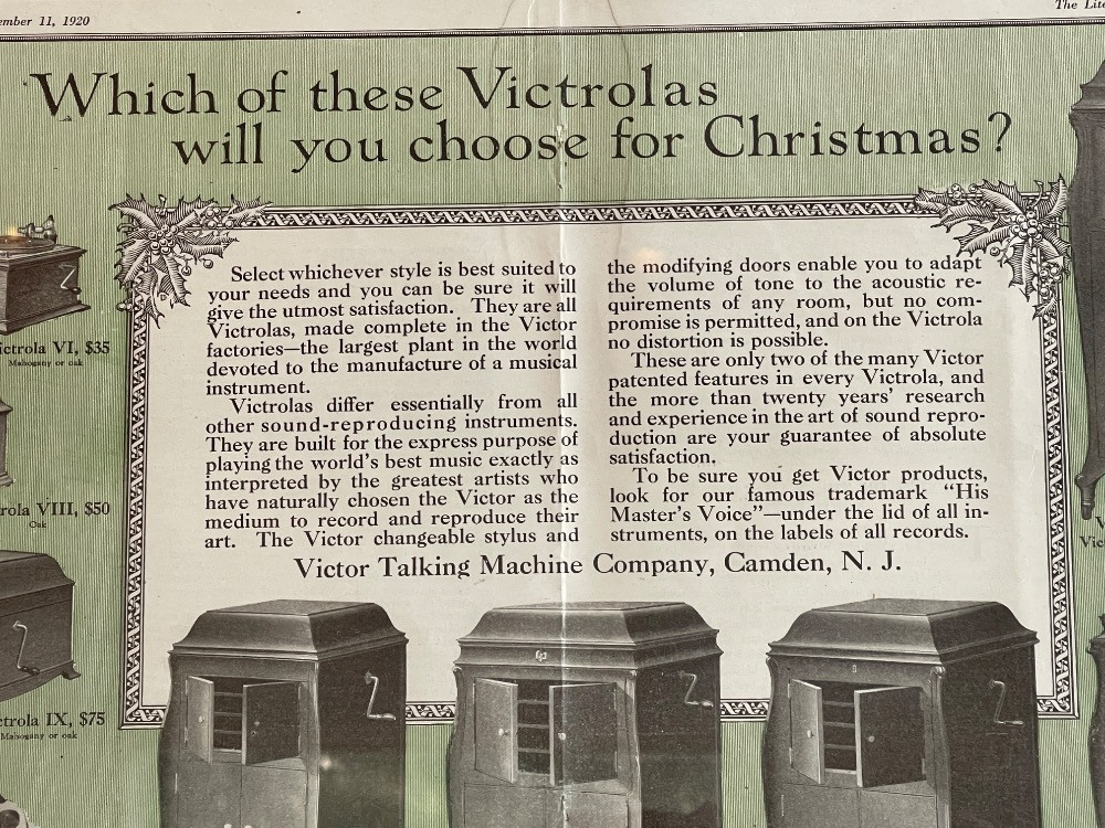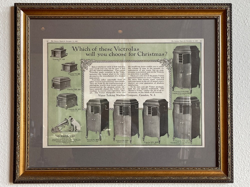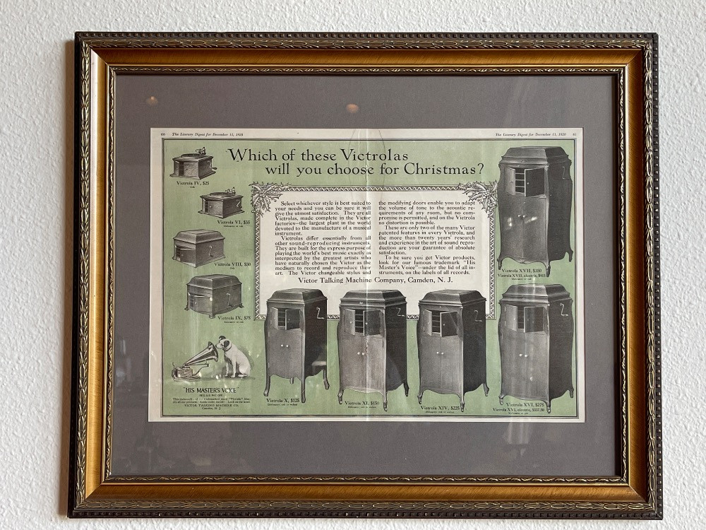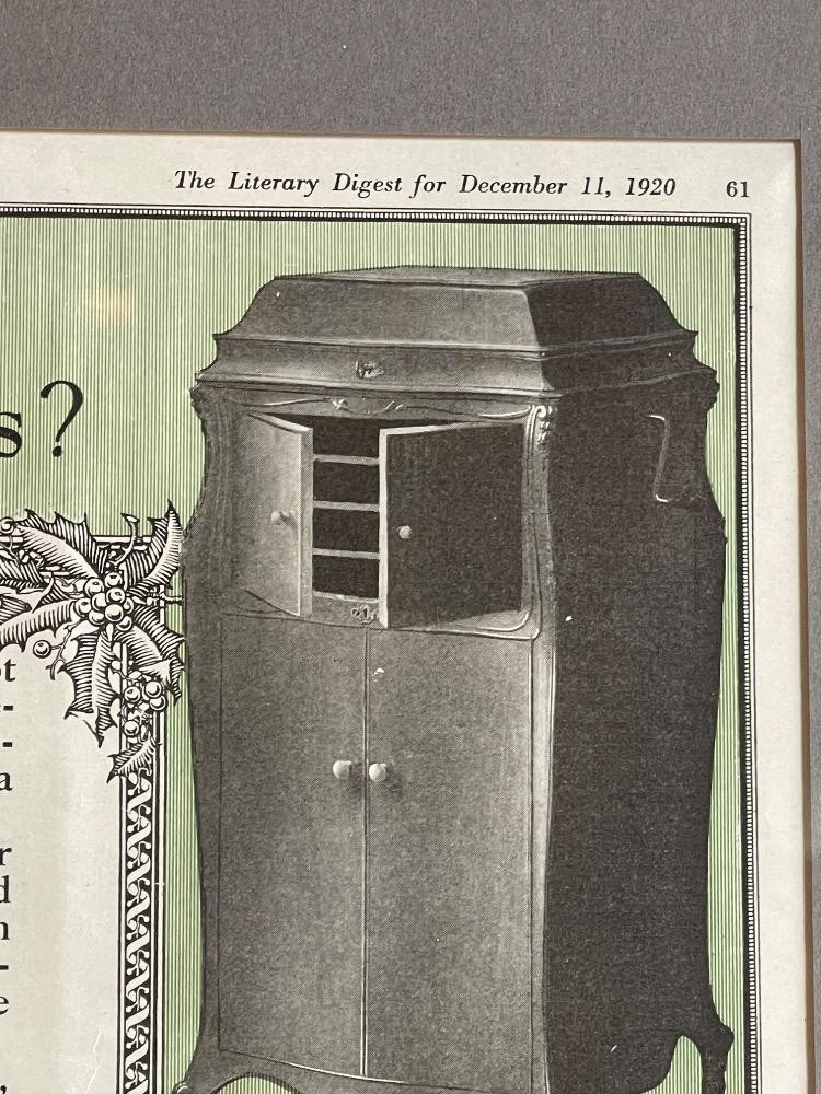 Victrola Talking Machine Framed Advertising from the Literary Digest for December 11, 1920 Measures 23"x19"