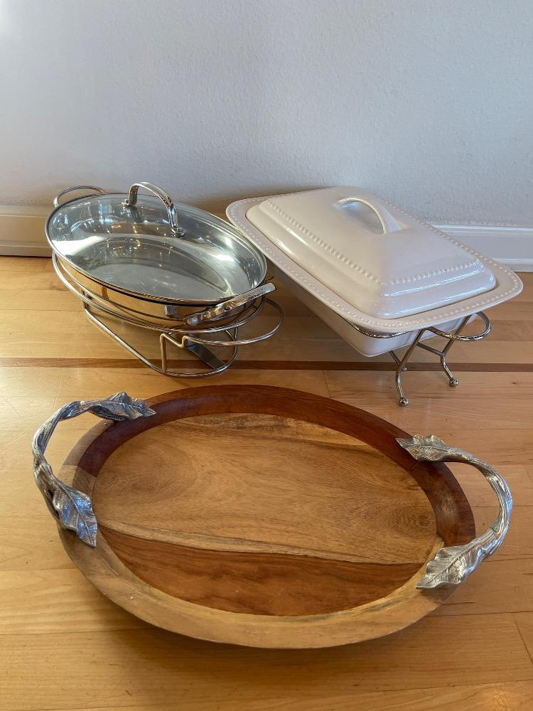Lot # 17 - Buffet Servers Cuisinart- Ceramic - Wood with Metal Handles