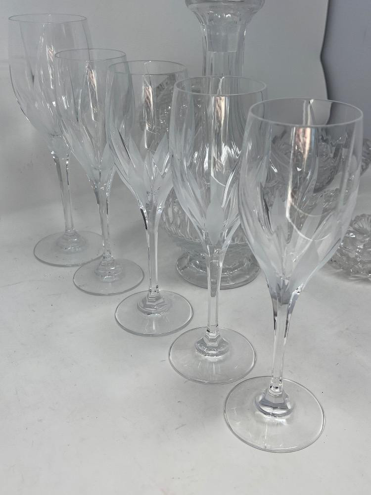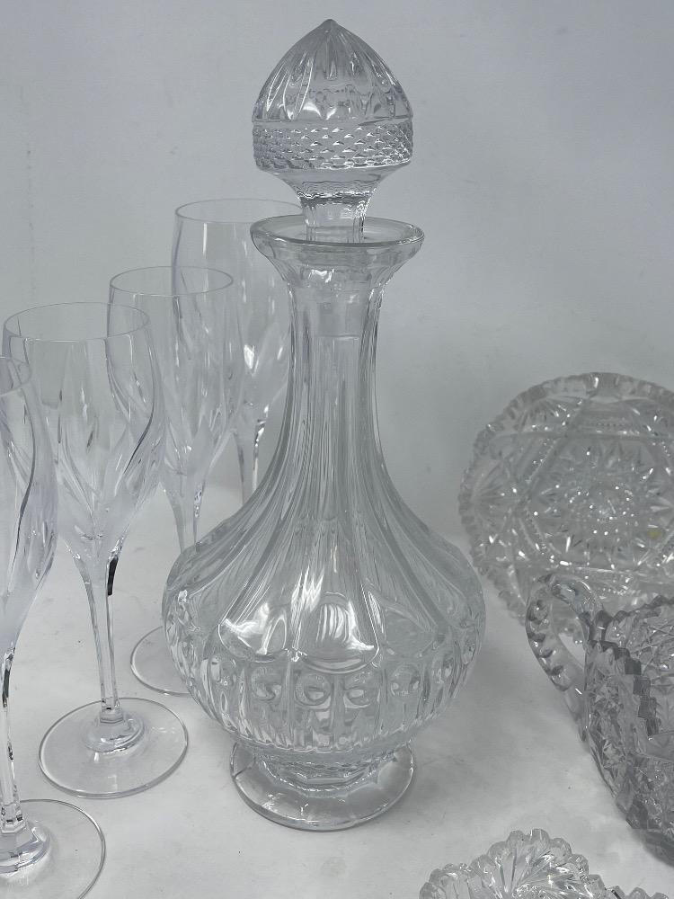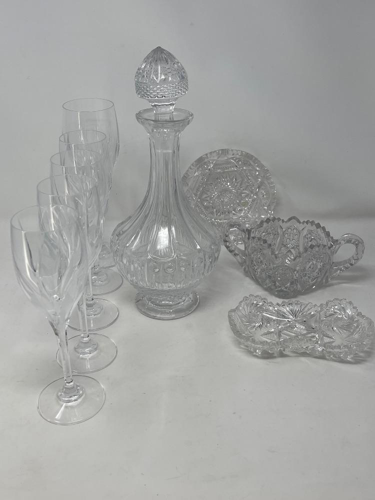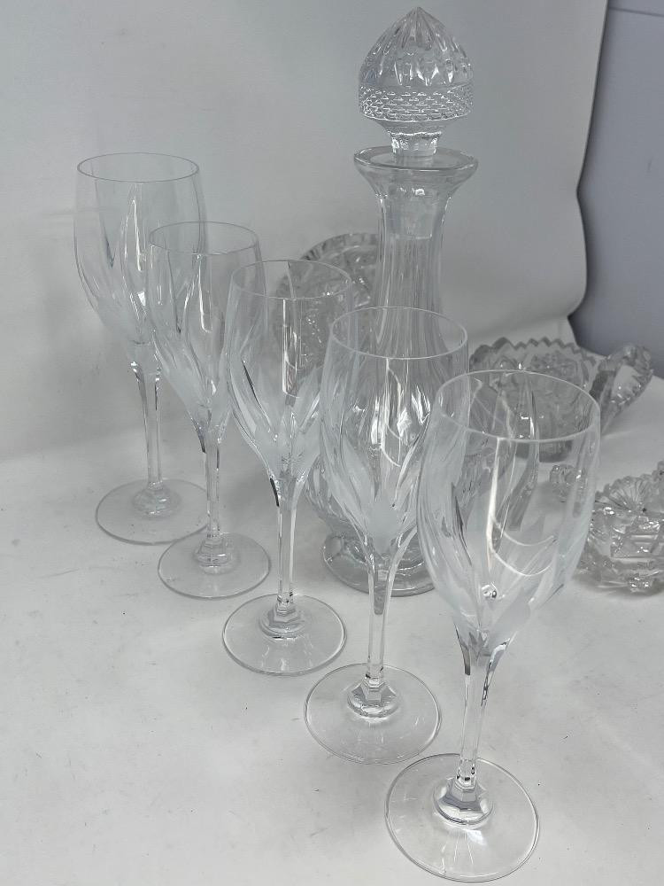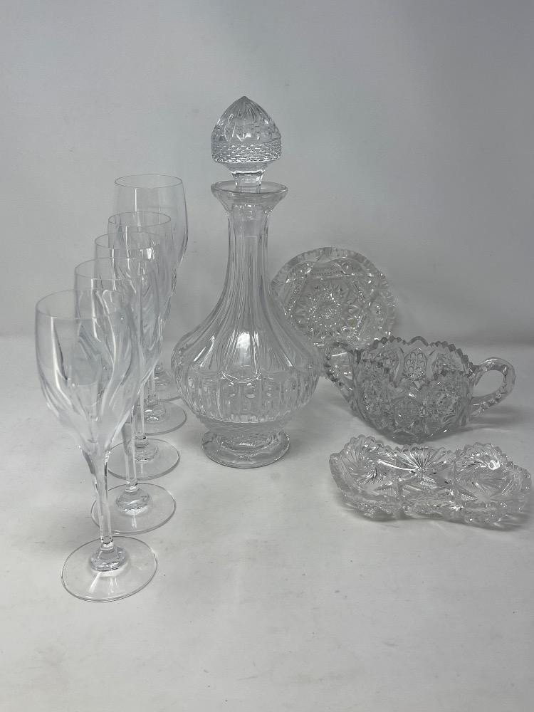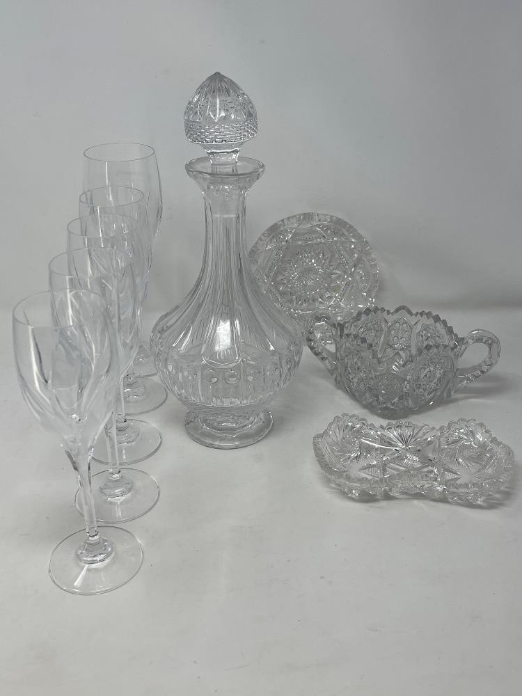 Lot # 18 - Mikasa Flame D’Amore Cut Crystal Flutes & Glass Candy Dishes