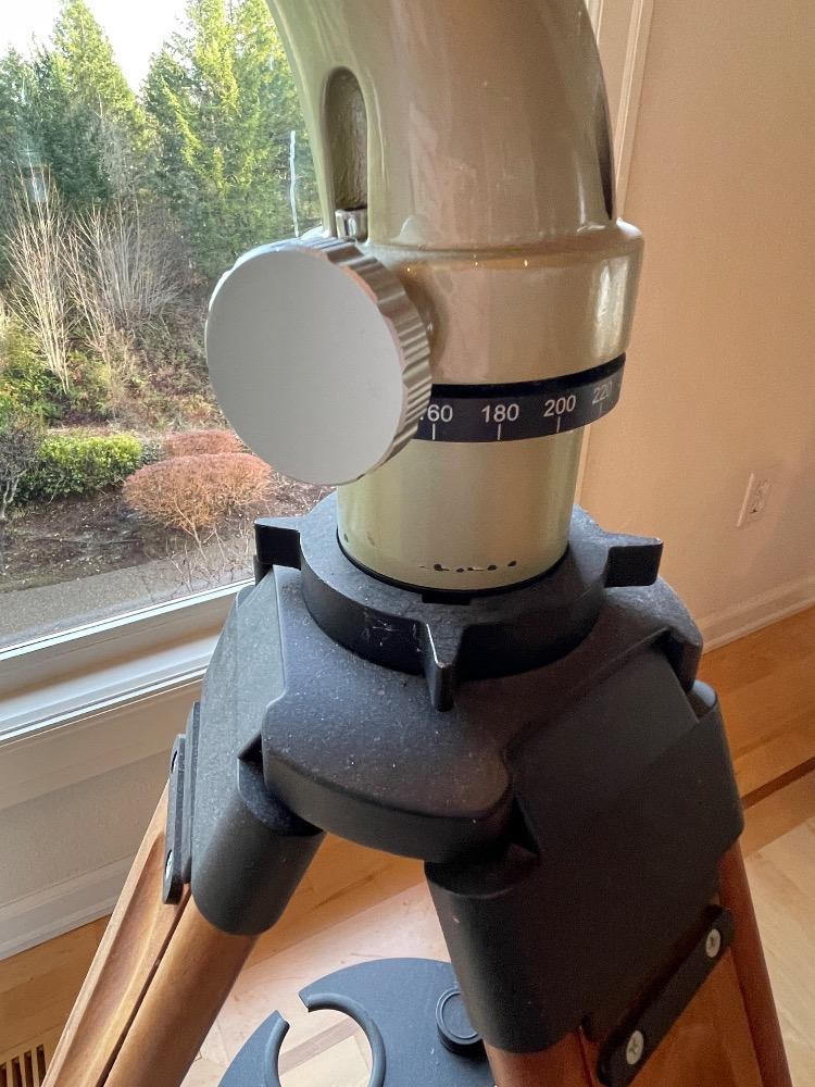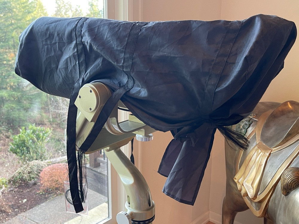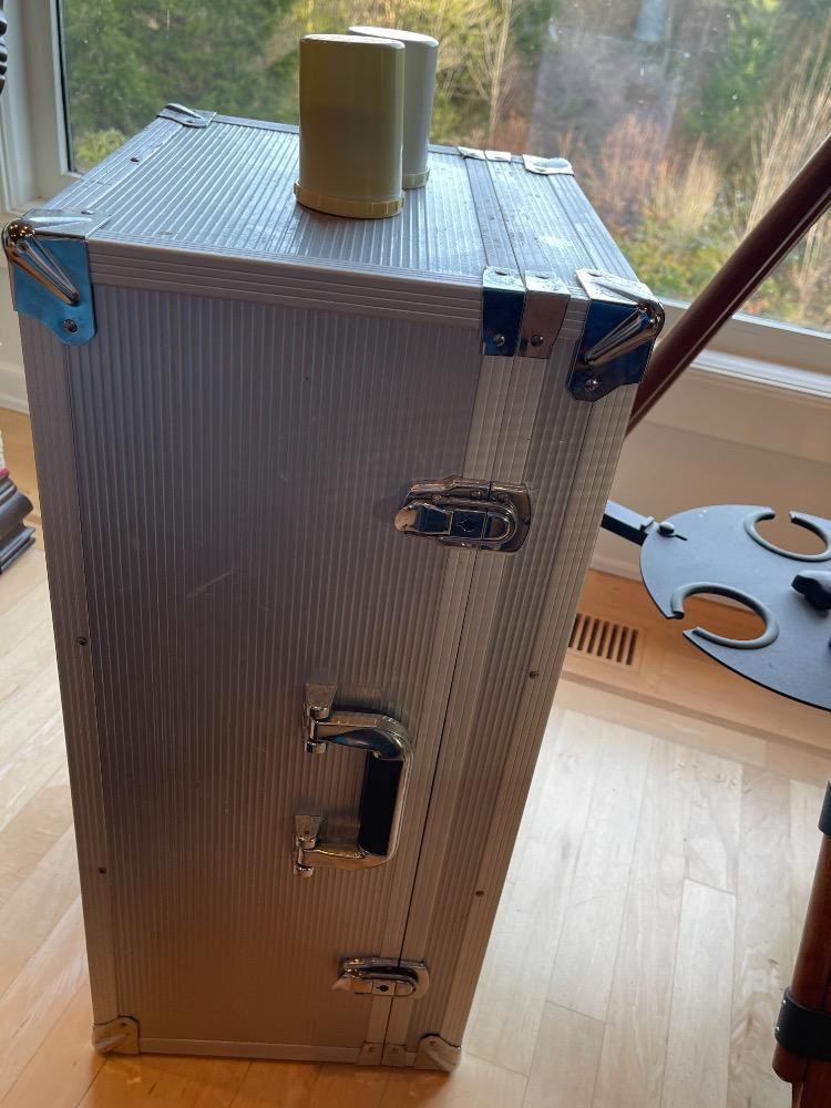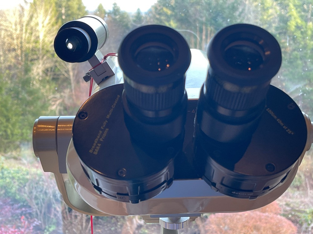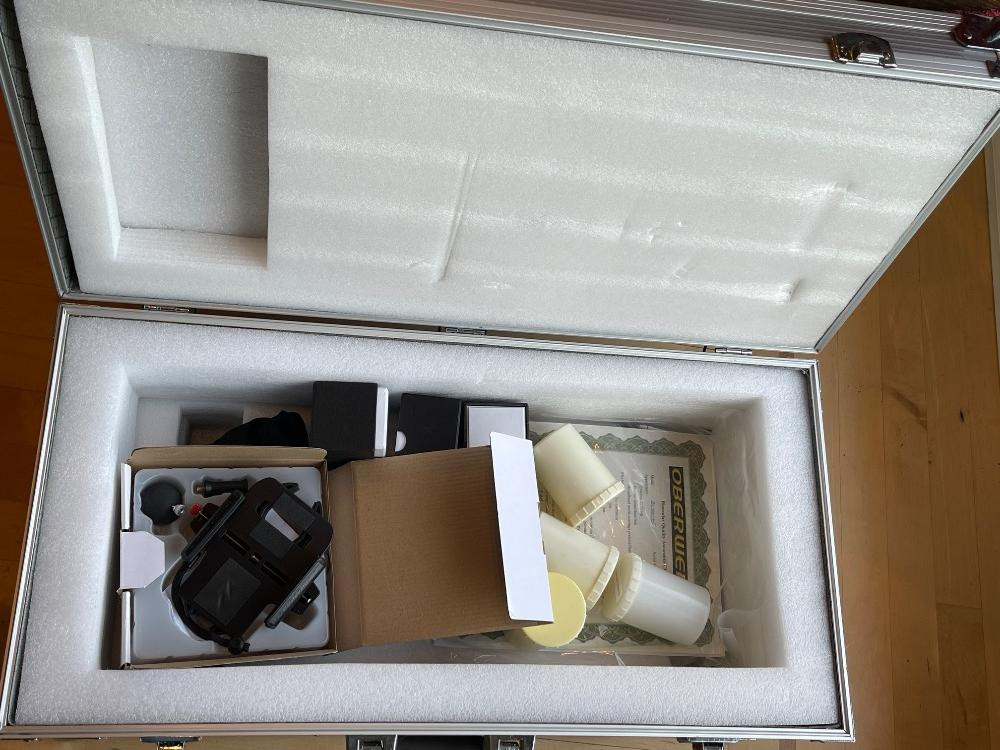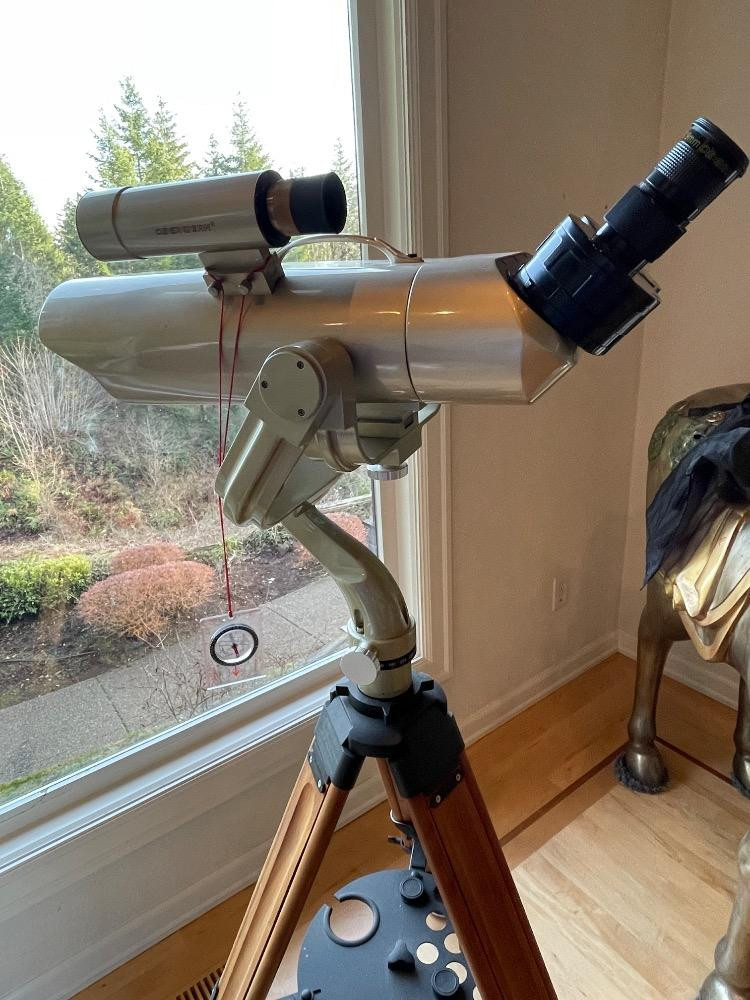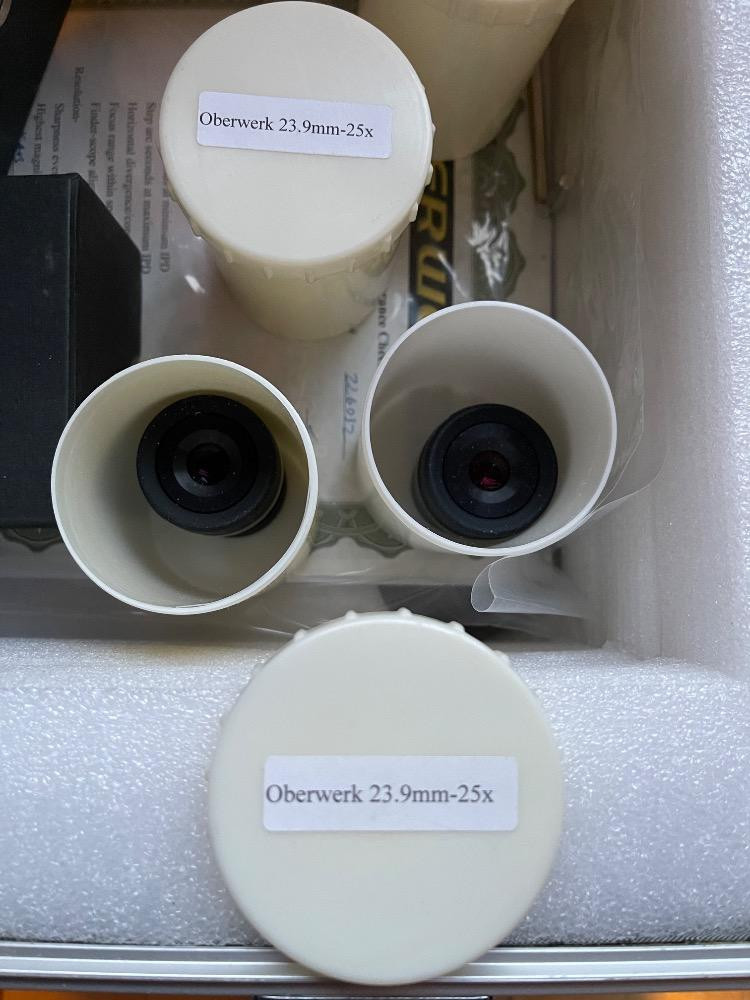 Oberwerk Binocular Telescope BT-100-45 Champagne body with a maple and black tripod. The Mt Rainier photo was taken through the lens without any adjusting. $2500 when new. Additional lenses and carry case. For nearly two decades the now-discontinued 28-lb. Oberwerk BT-100-45 was considered the world’s most powerful binocular. With its 7 pounds of optical glass and 24″ long cast aluminum body, this majestic instrument could provide up to 75x magnification, with excellent clarity.