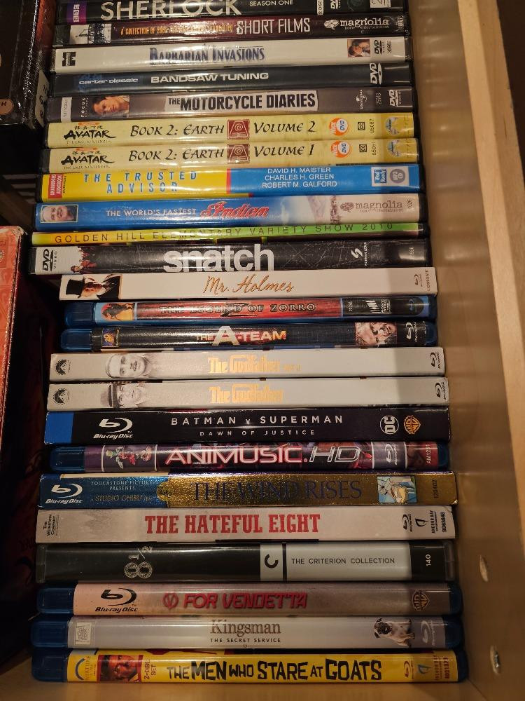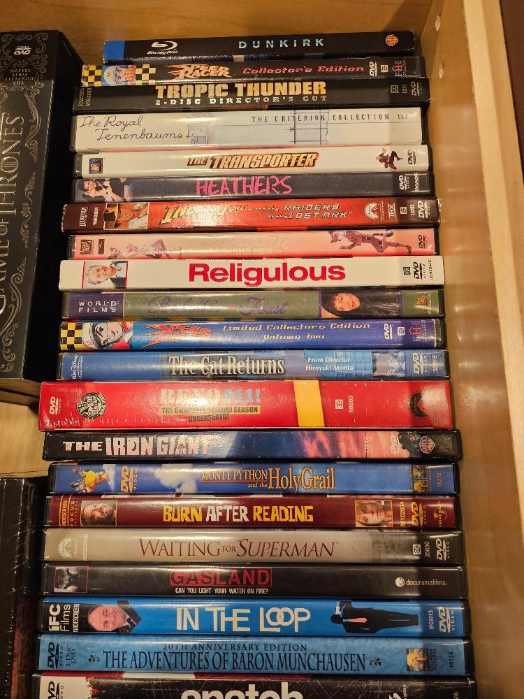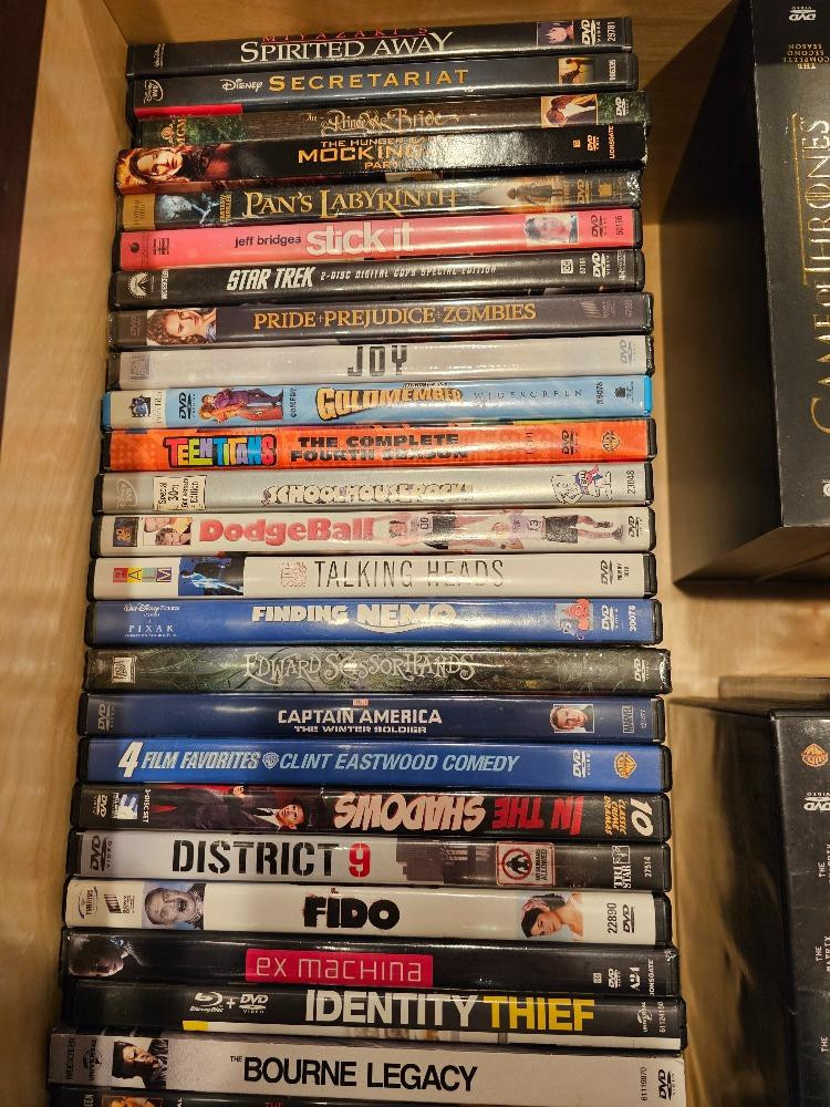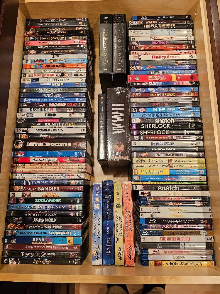 DVD & Blu-ray Movie Collection Nearly 100 movie titles! (13) Blu-ray movies (84) DVDs & Collections Game Of Thrones Season 1 & 2 Boxed Sets Ultimate Matrix Set Harry Potter 8-Film Collection The Godfather (Part 1 & 2) Star Wars - The Empire Strikes Back Star Wars - Revenge Of The Sith Sherlock Season 1 & 2 Snatch Raiders Of The Lost Ark Captain America - The Winter Soldier Jurassic World Reno 911 Season 1 Edward Scissorhands Unopened WWII Box Set And many, many more!