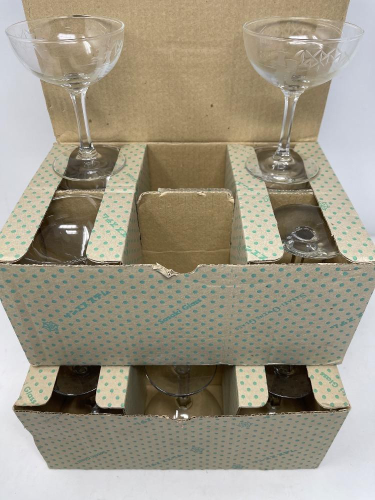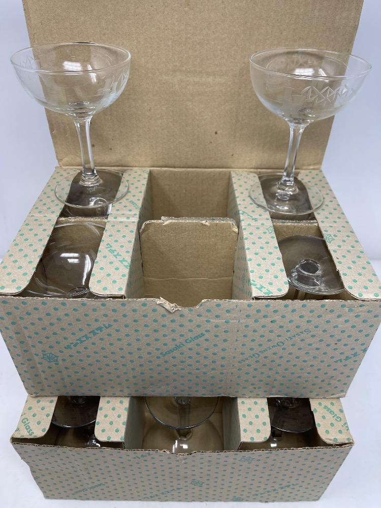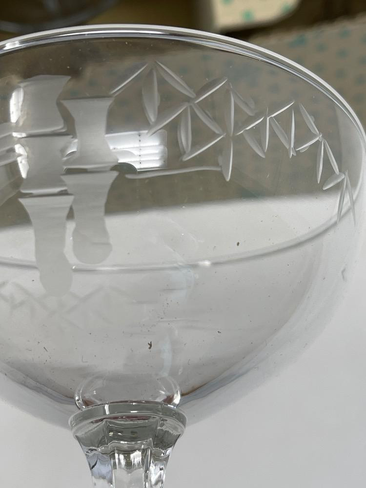 (12) 4.5” Sasaki Glass Vintage Bamboo Etched Champagne Glasses.