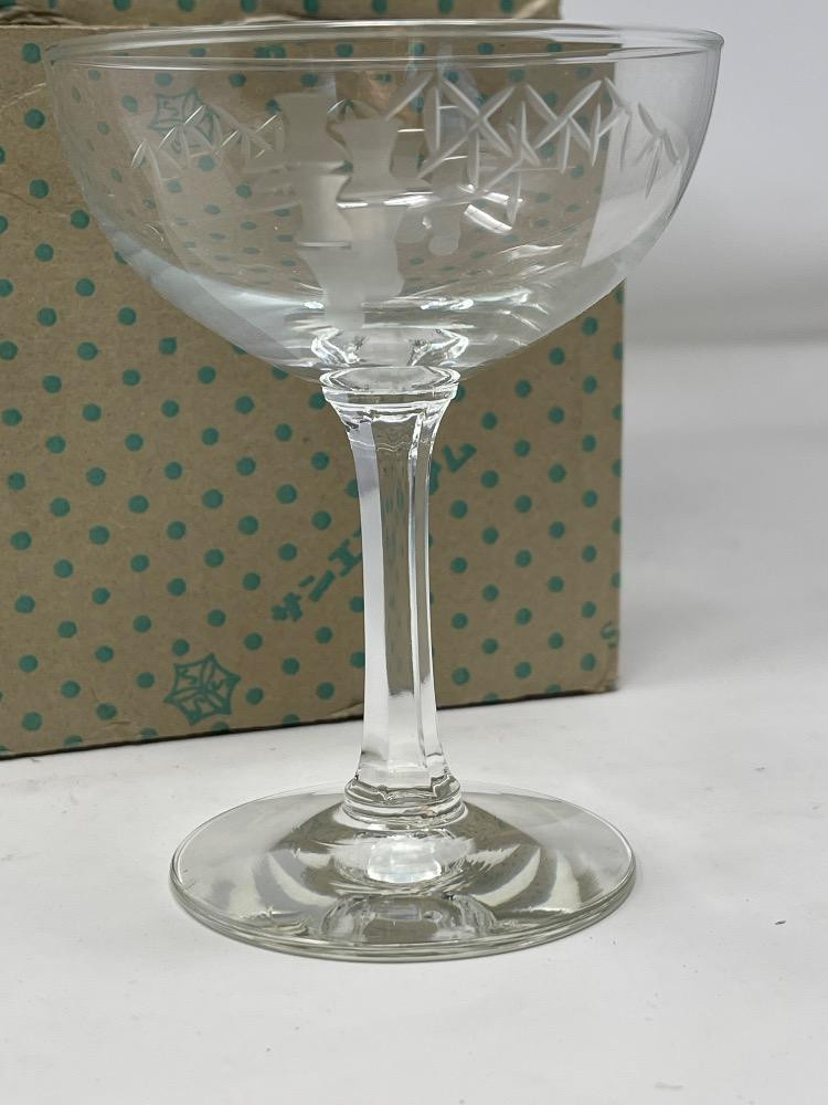 Lot # 53 - 12 Vintage Noritaki Bamboo Etched Champagne Glasses - Sasaki Glass