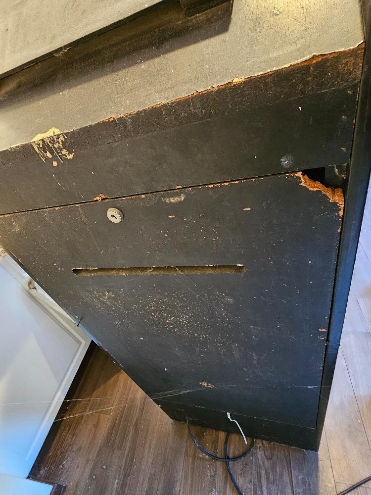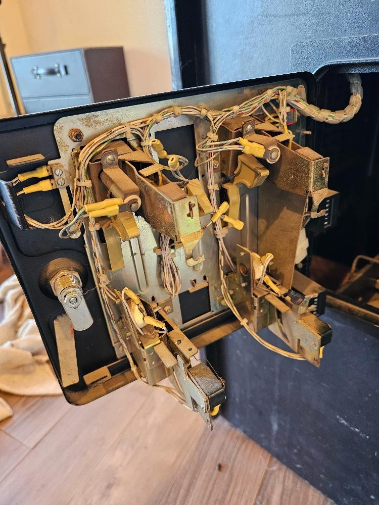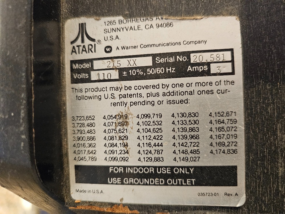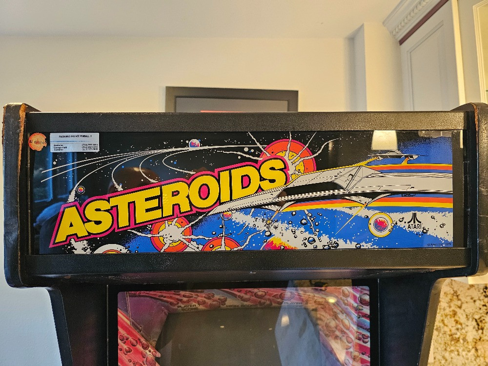 Vintage Asteroids Full-Size Arcade Machine (Project) Possibly an arcade model released in 1979 Atari Model #215 XX Atari Serial #20,581 Unit will work and play initially when the coin mechanism is tripped. After a few minutes the screen will condense to one line and is unreadable. Possible screen replacement or upgrade to make this unit fully functional again. Excellent candidate for restoration or upgrade the cabinet for retro gaming! Front control panel is complete in excellent condition. Cabinet side panels art is nice with some peeling. Main upper panel appears pretty nice. See pics for cabinet condition Left side coin mechanism and key included 73"T x 25.25"W x 31.25"D Tested - Read description above!