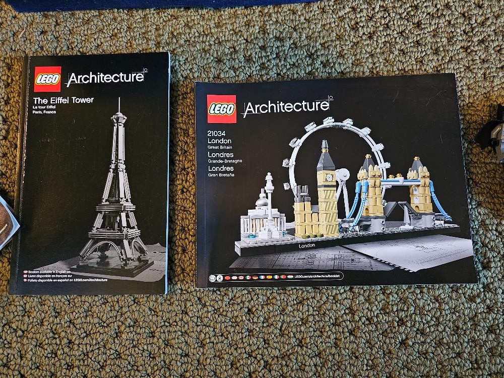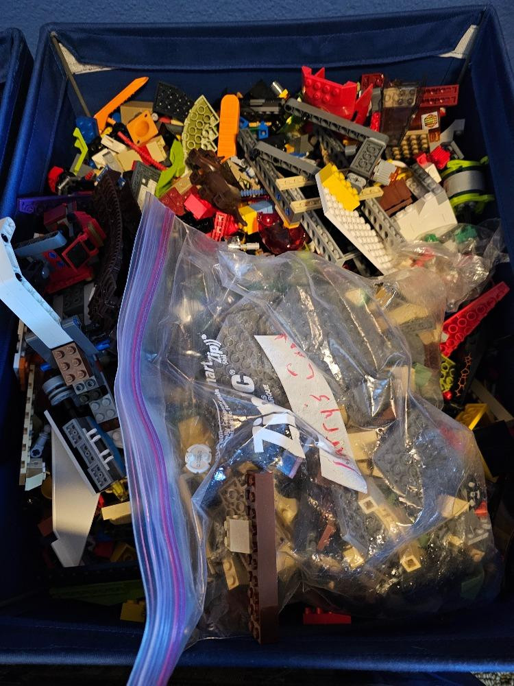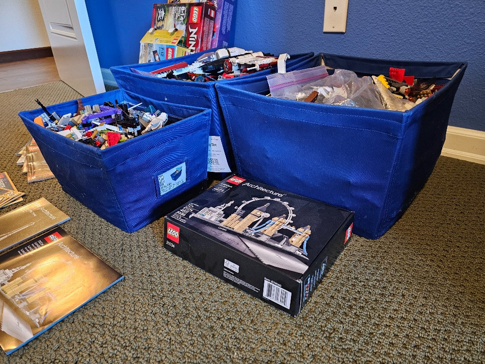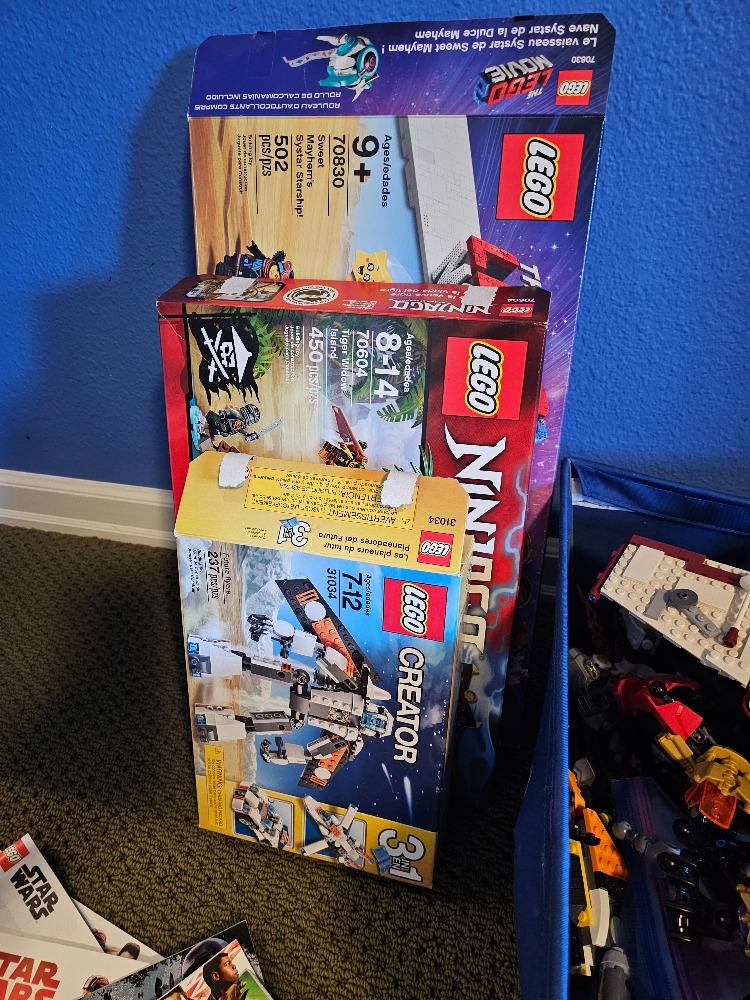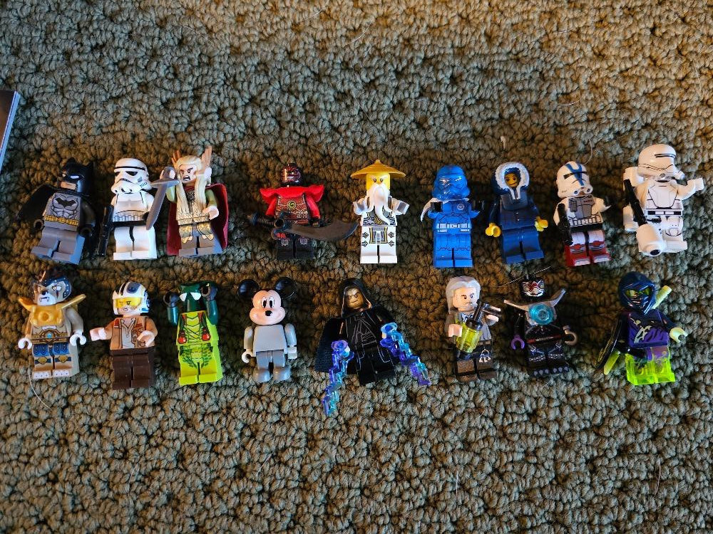 Assorted LEGO Sets, Mini Figures & Build Manuals Star Wars, Batman, Creator, Architecture, Ninjago, & The LEGO Movie and more sets in 3 bins. It appears that most of the sets have been dismantled, but some larger pieces remain built. Box of 60+ assorted mini-figures (Star Wars, Mickey Mouse, Batman and more) Build manuals for numerous sets Boxes with some unopened bags of LEGOS (but not complete set) Large blue bins are 9.5"T x 17"L x 13.5"D Medium blue bin is 7"T x 13"L x 10"D 25 lbs total!