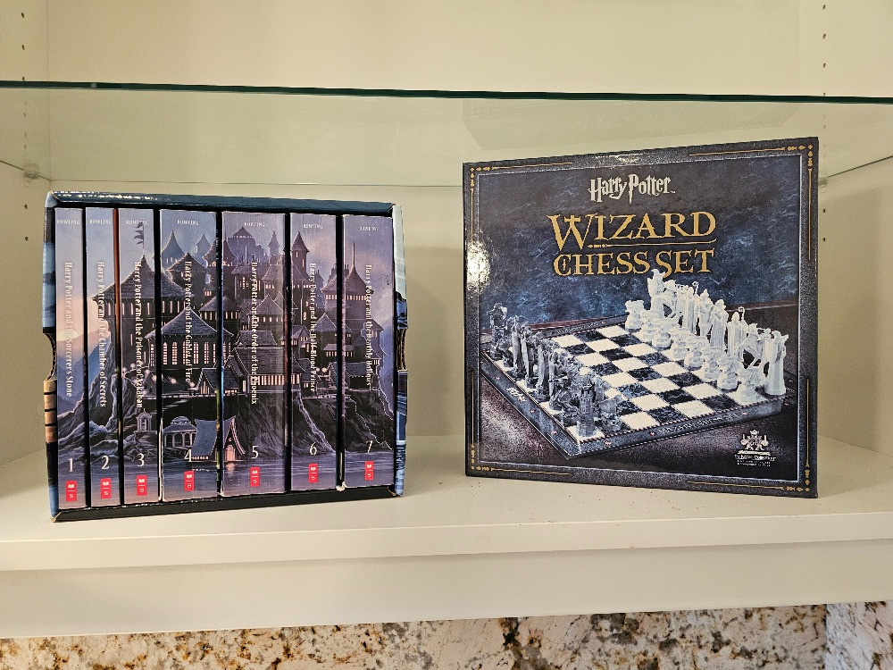 Harry Potter Complete Book Series & Wizard Chess Set Harry Potter "The Complete Series" 7 books set by J.K.Rowling Book have been used and read Harry Potter Wizard Chess Set Set is complete with all 32 Chess pieces and board, in original box