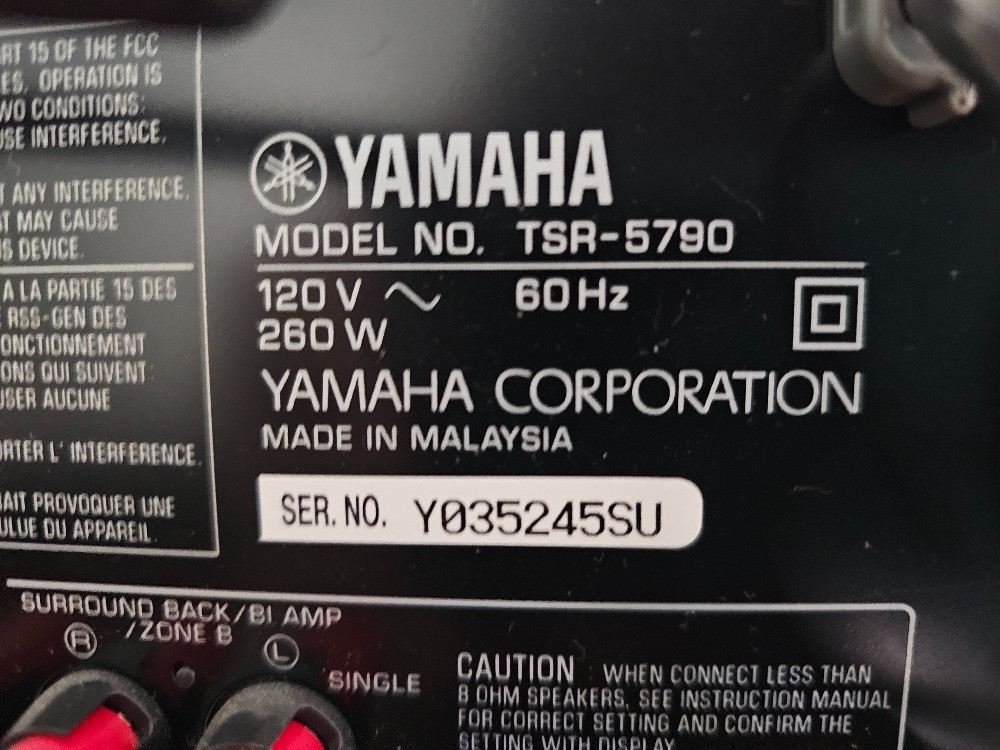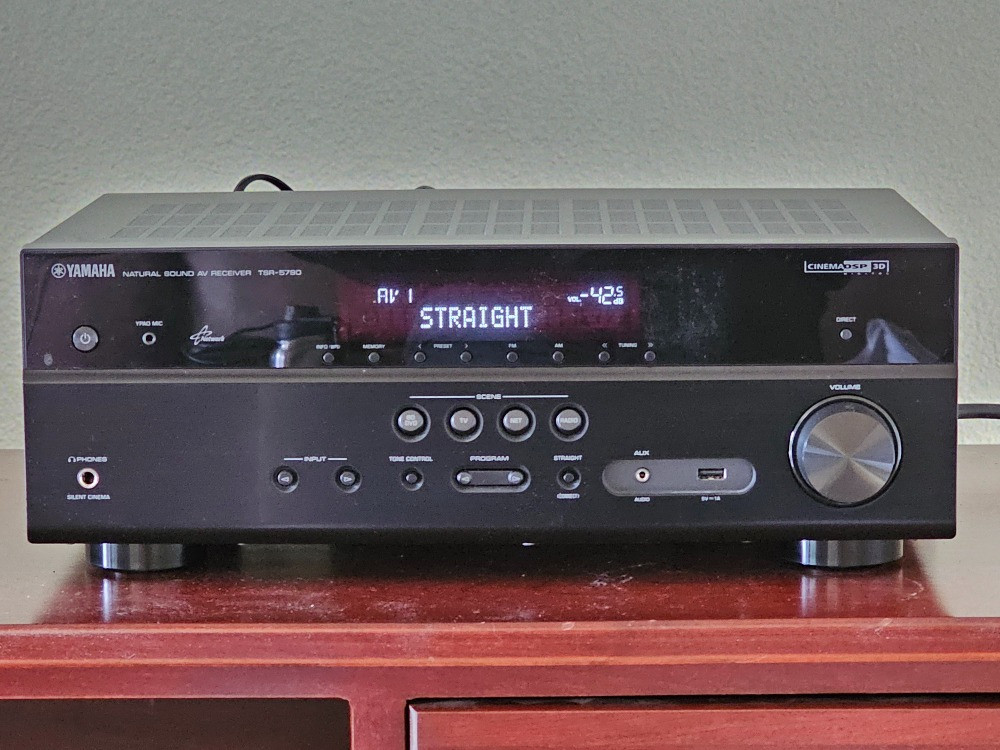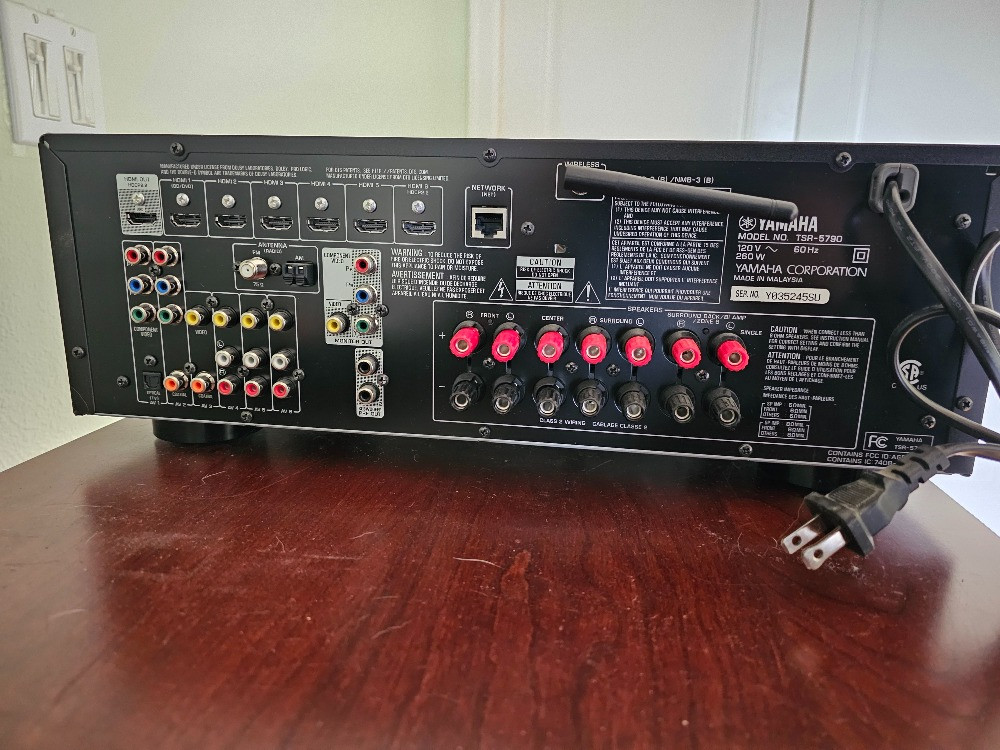 Yamaha Natural Sound A/V Receiver TSR-5790 7.2-channel network AV receiver with 4K Ultra HD video and HDCP 2.2 compatibility and Bluetooth 6 HDMI inputs Includes power cable, HDMI cable, remotes and manuals 6.5"T x 17"W x 11"D Tested - Pulled from a working system