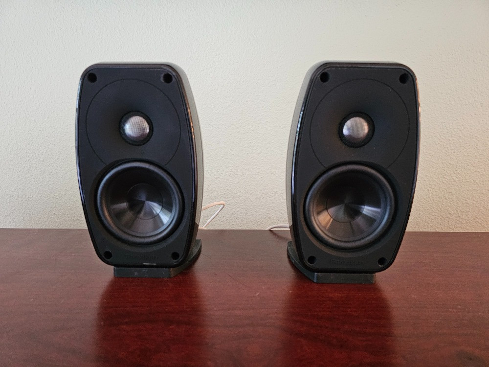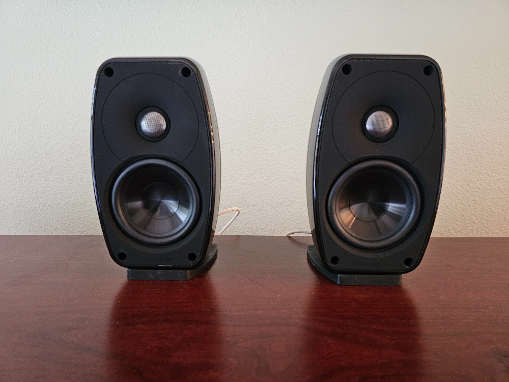 Paradigm Cinema 100 Speakers 2-driver, 2-way acoustic suspension, stand-mounted / wall-mounted Removable grills Gloss black 8.5"T x 5"W x 6"D Tested - Pulled from a working system