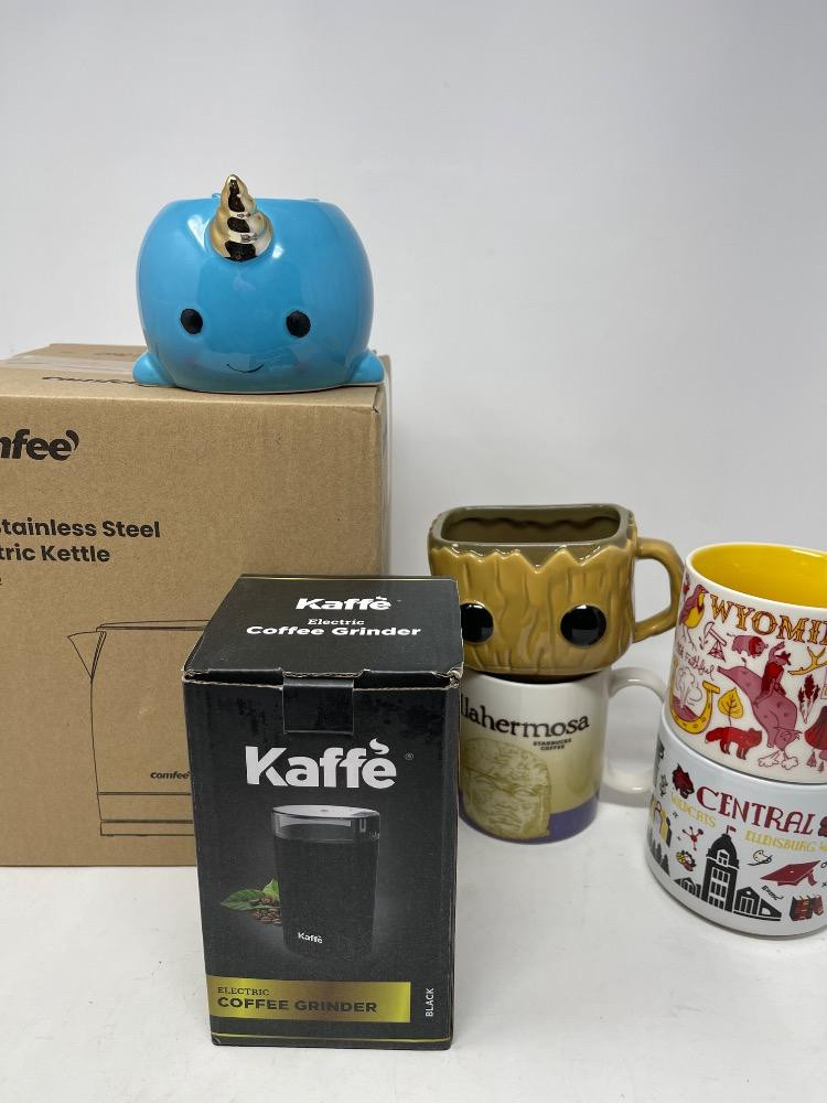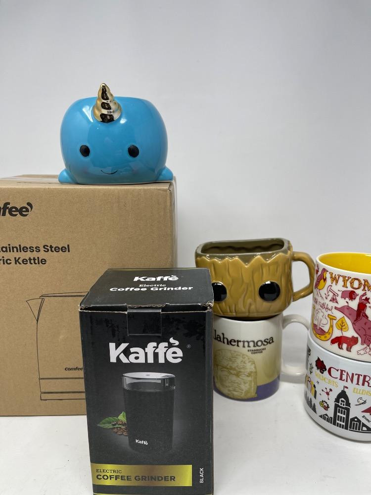 Lot # 88 - Electric Kettle & Coffee Grinder NIB -Starbucks Mugs +