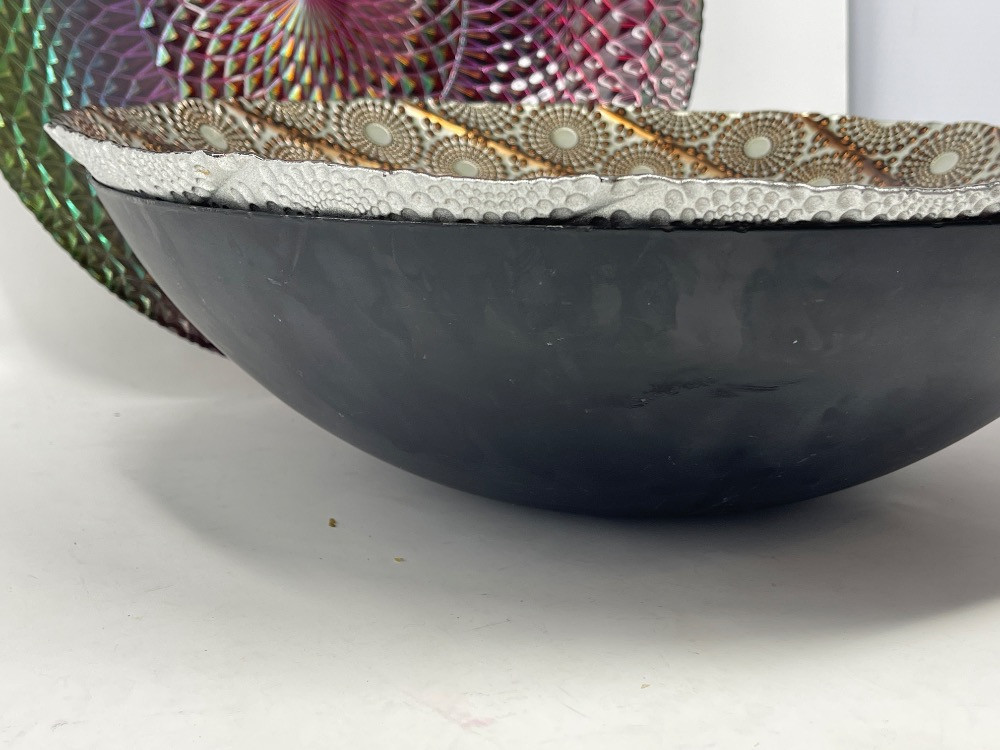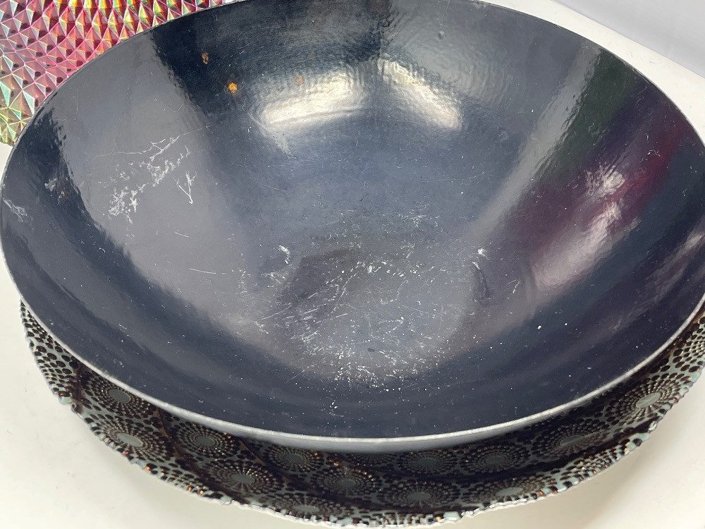 (3) XL Serving Bowls (3) XL Serving Bowls each 15”’in diameter. Two decorative and one solid black bowl. Fill it with ice to keep top bowl contents chilled.