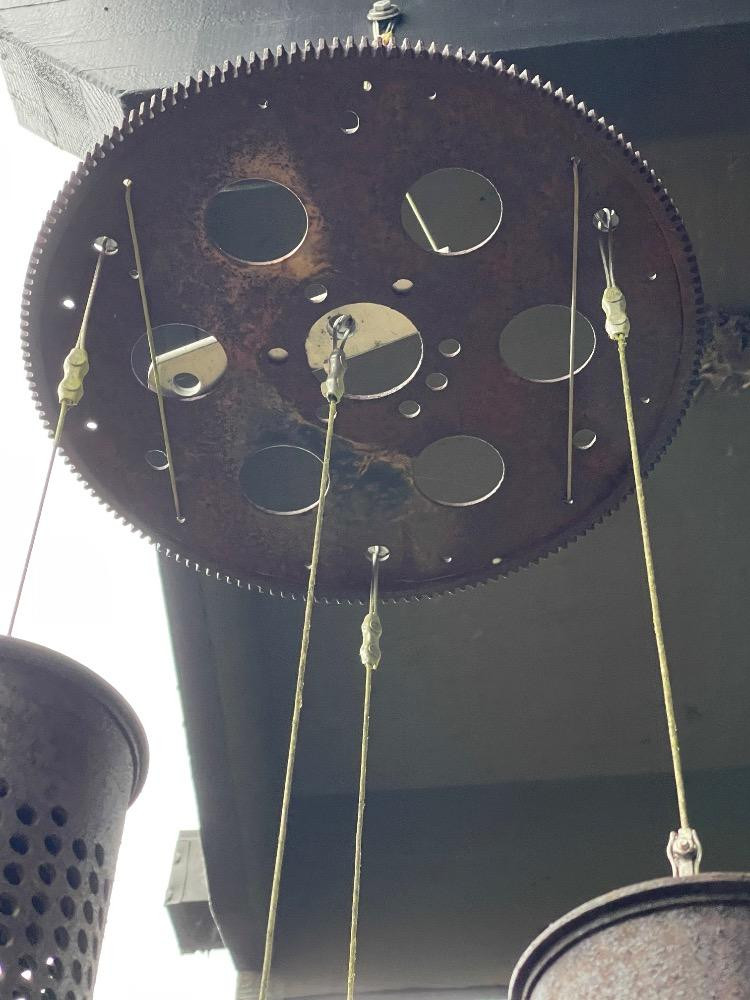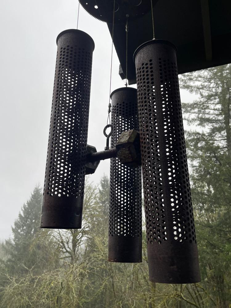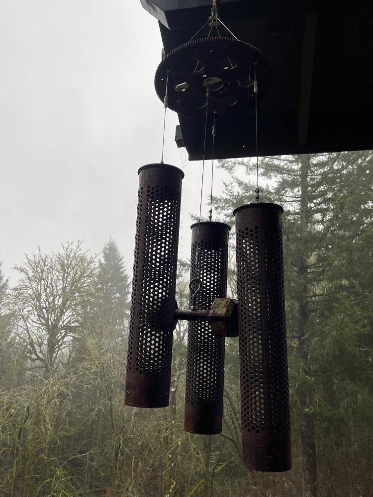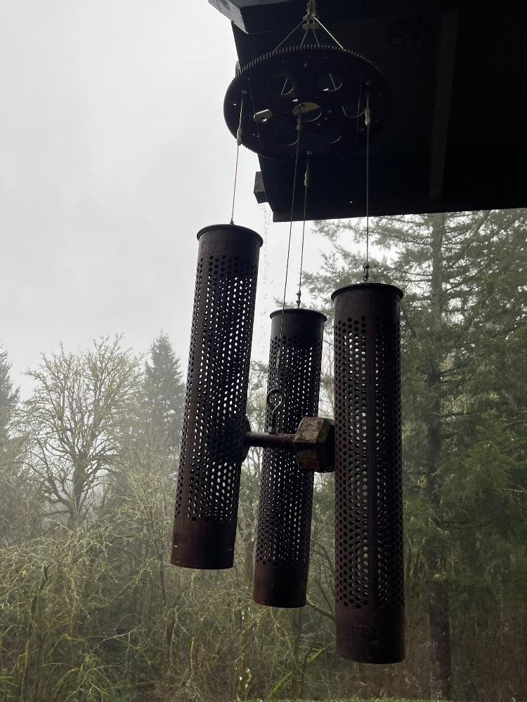 Steampunk Wind Chime Measures approximately 54” long. It does make noise, but it’s not a chime.