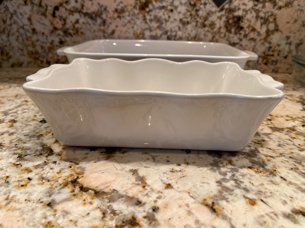 Porcelain Casserole and 2 Ceramic Loaf Pans