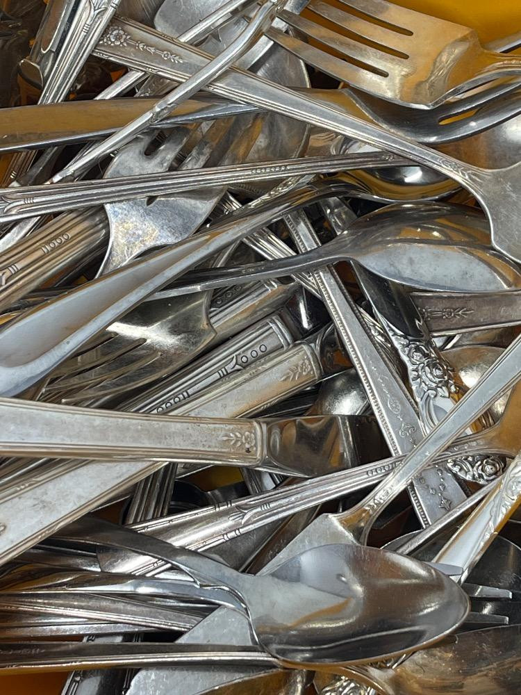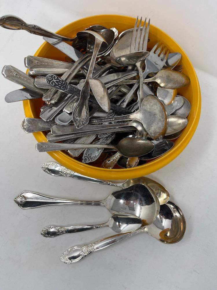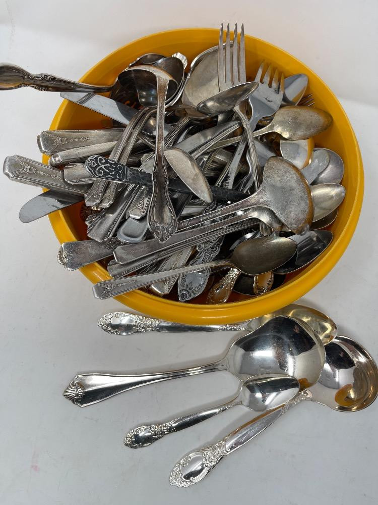 A Bowl of (mostly) Silver and Stainless Flatware. The bowl full is 8.4 lbs.