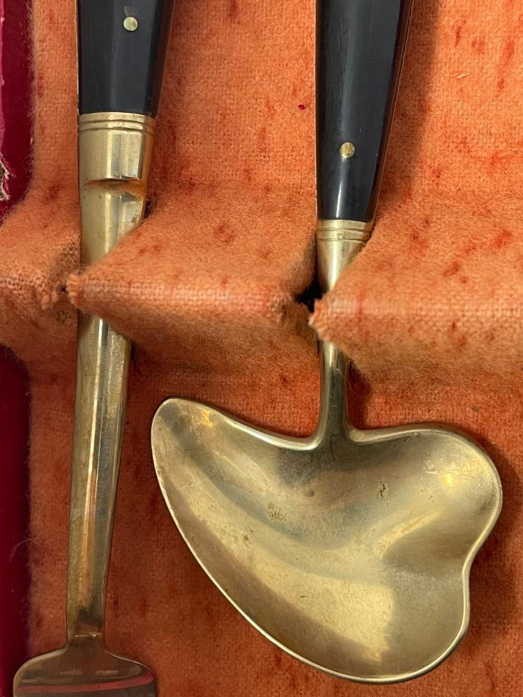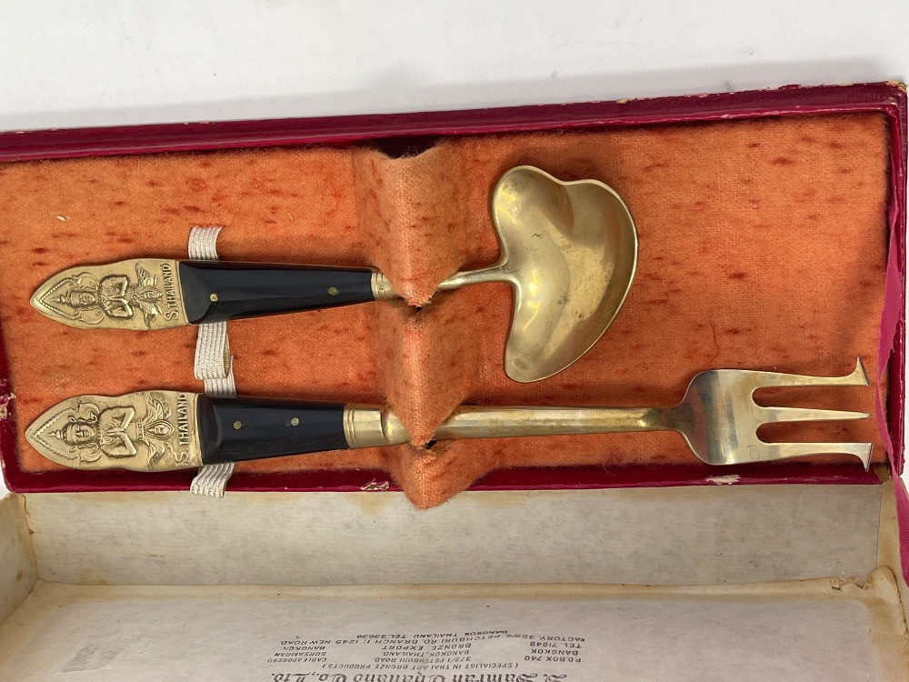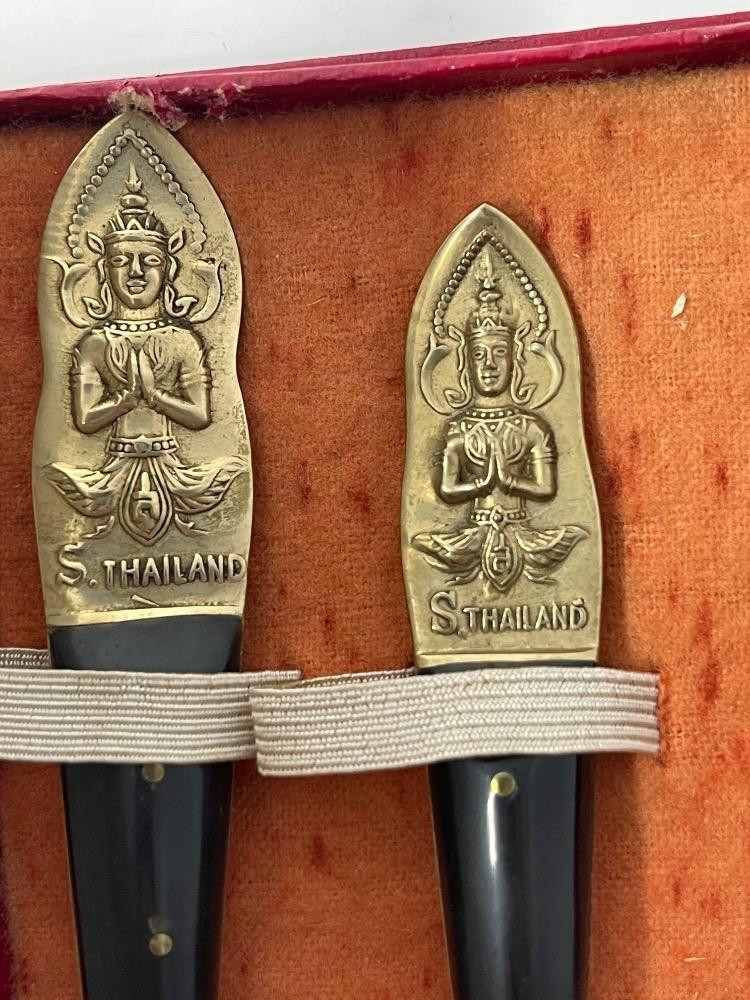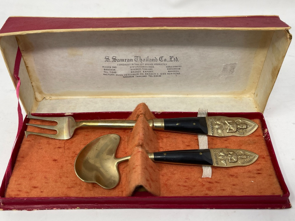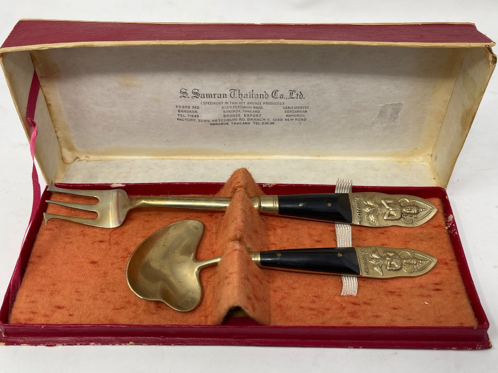 S Samran Thailand Co Bronze Set in Original Box Box measures 8“ x 3.25“ Bronze and black bone.