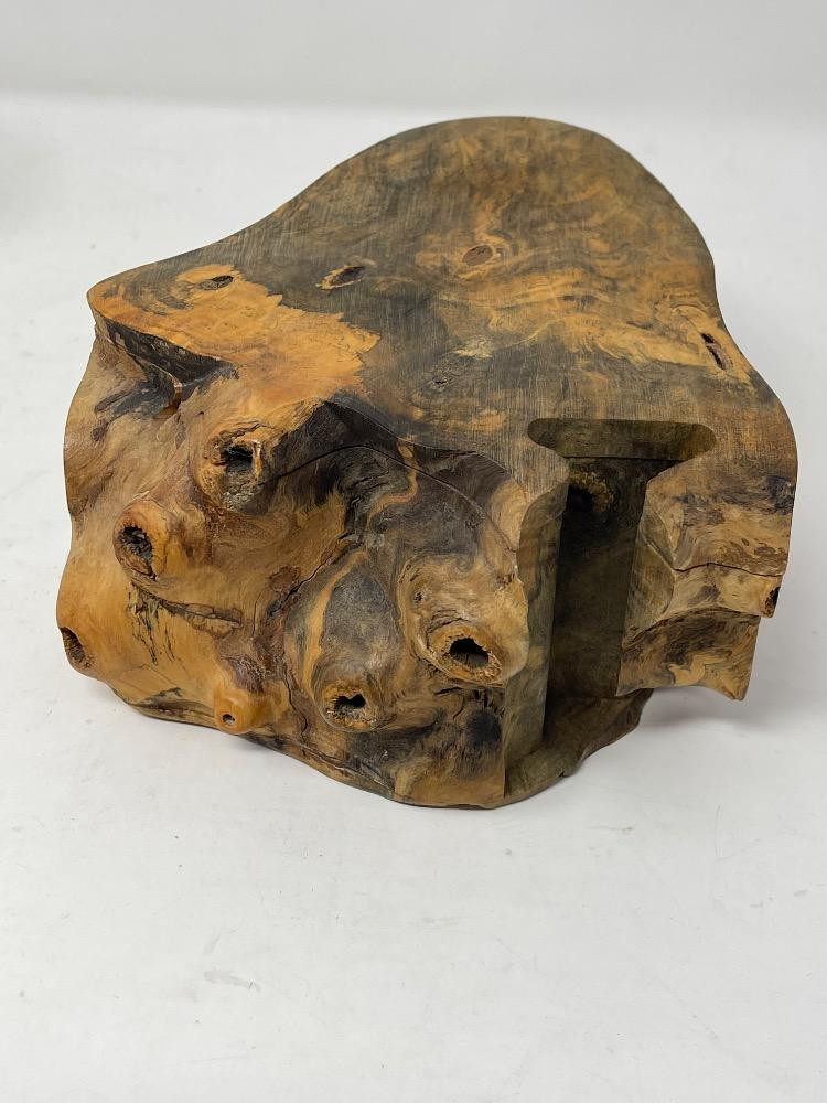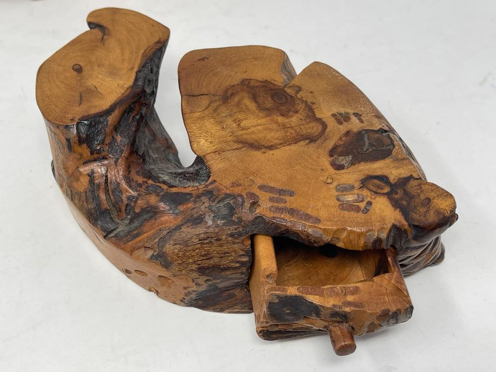 Chunk wood with hidden storage boxes.
