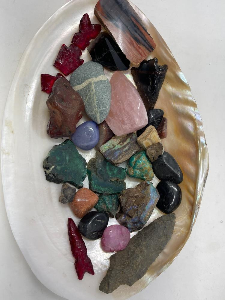 Smithsonian GEM coffee table book Polished Stones Arrowheads Puzzle Box measures 6”x7” Huge Clamshell of stones