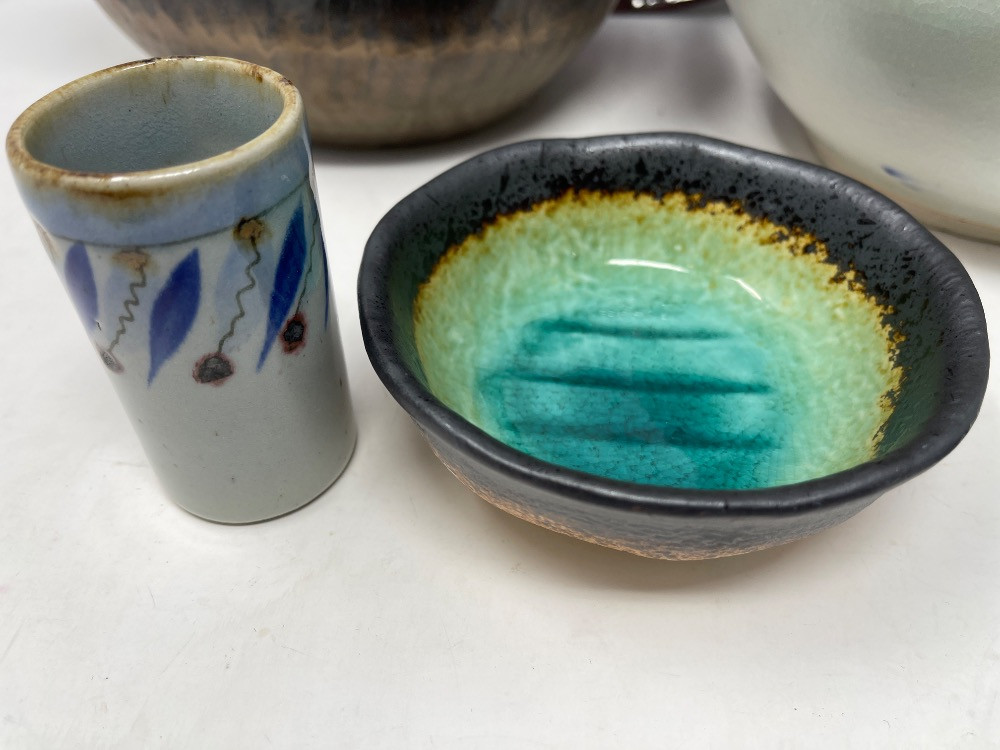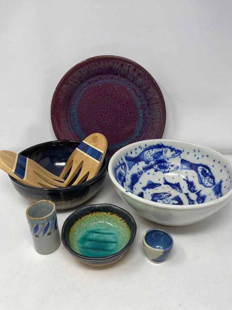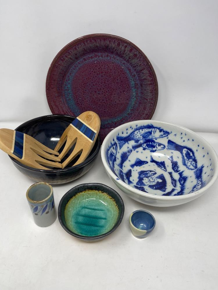 Lot # 140 - Variety Pottery Bowls with Wood Salad Claws