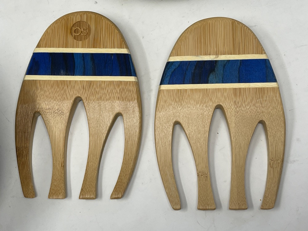 Variety Pottery Bowls with Wood Salad Claws and Pie Plate