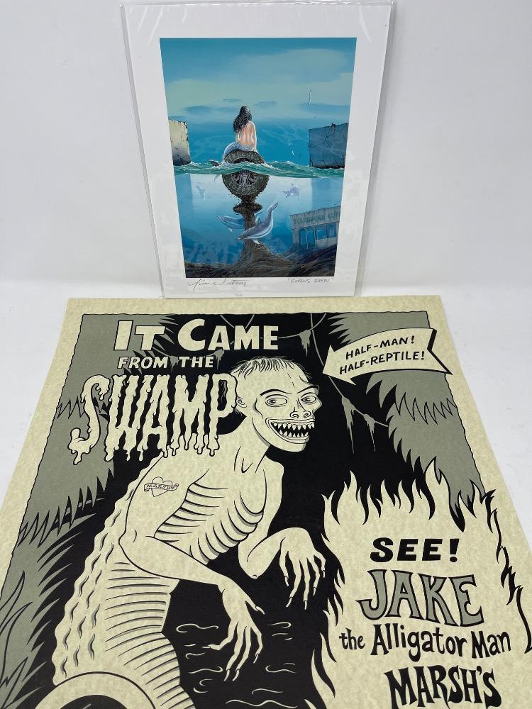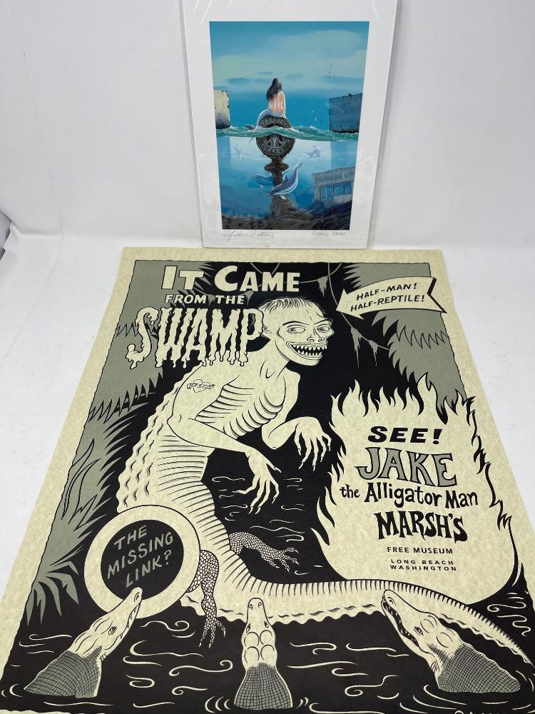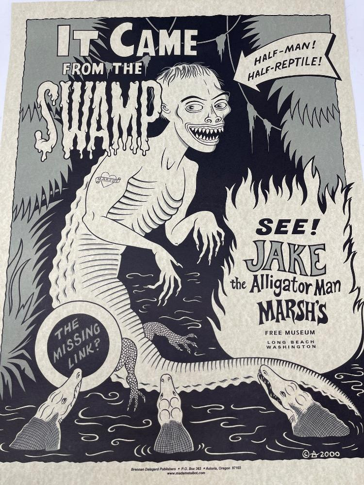 Jake the Alligator Man poster is 17”x22” Siren’s Brew is 8.5”x11”
