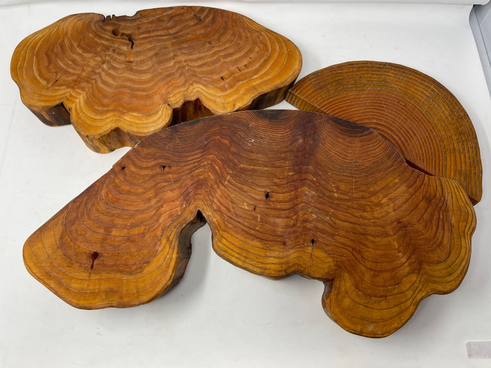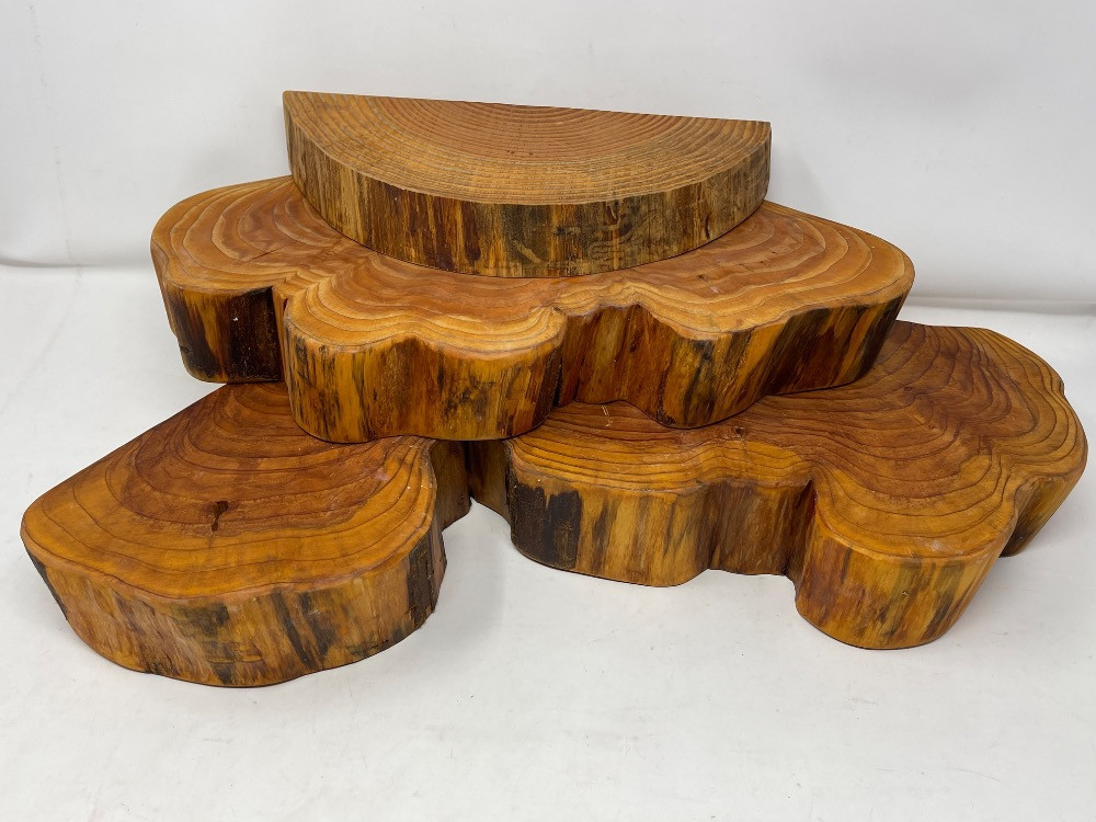 3 Slab Table Top Risers or Art Medium Largest measures 20“ x 11“ x 2.5“. Next measures 15“ x 8“ x 2“ next measures 5.25“ x 11.25“ x 1.25“. Use to elevate food at your next event or use as a surface to paint, carve or create!
