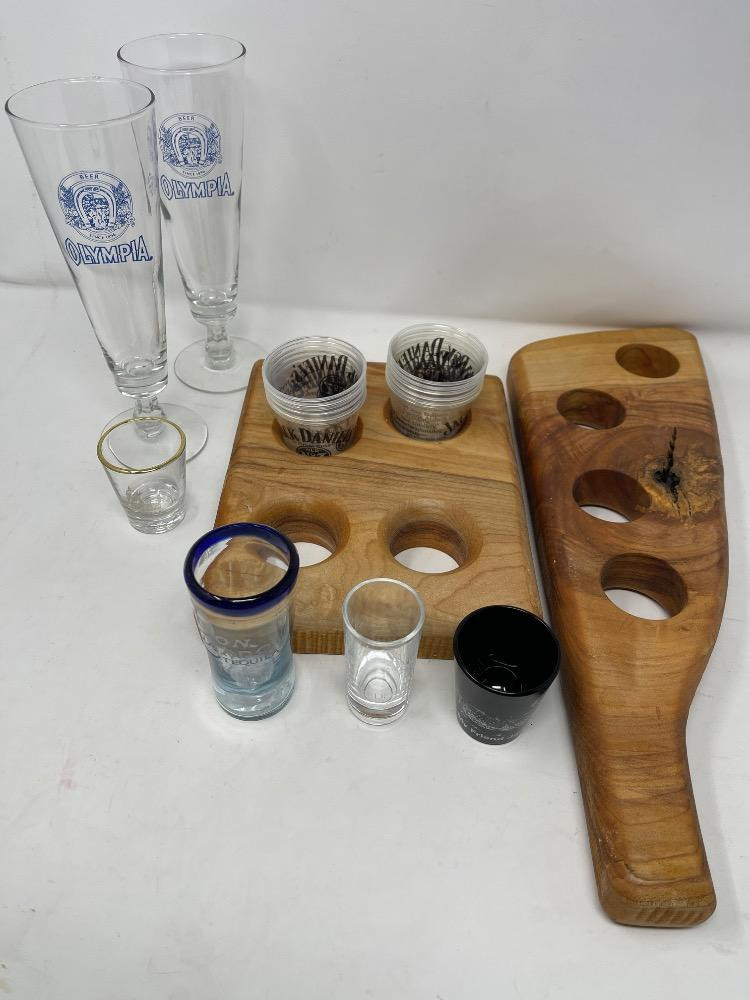 Lot # 145 - Shot Servers - Glasses and Olympia Beer Glasses