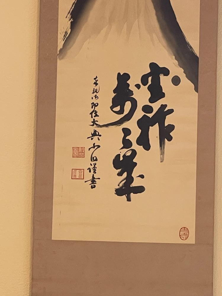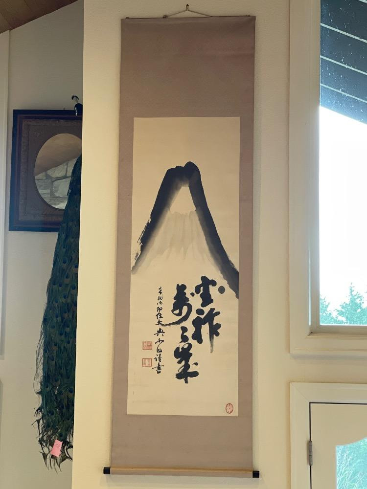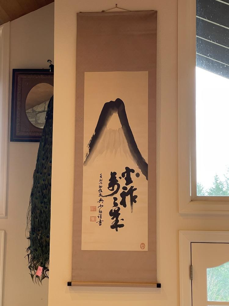 This is a Japanese hanging scroll featuring calligraphy. 85”x28”