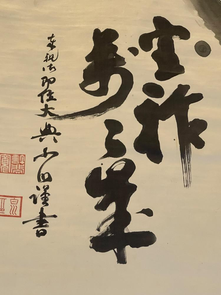 Lot # 152 - Japanese Painted Silk Scroll Featuring Caligraphy