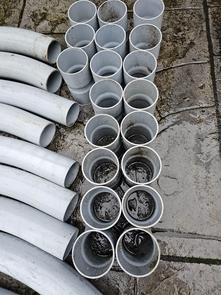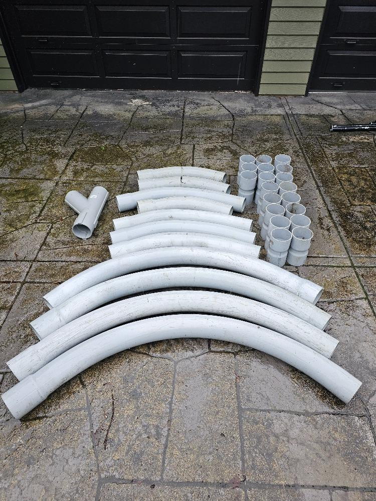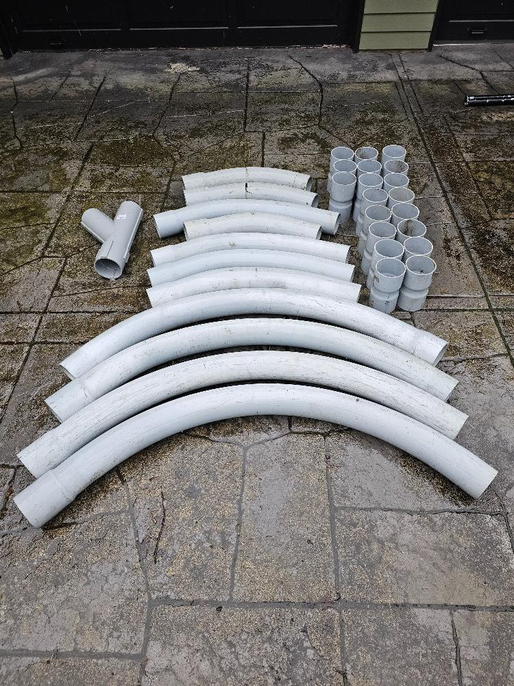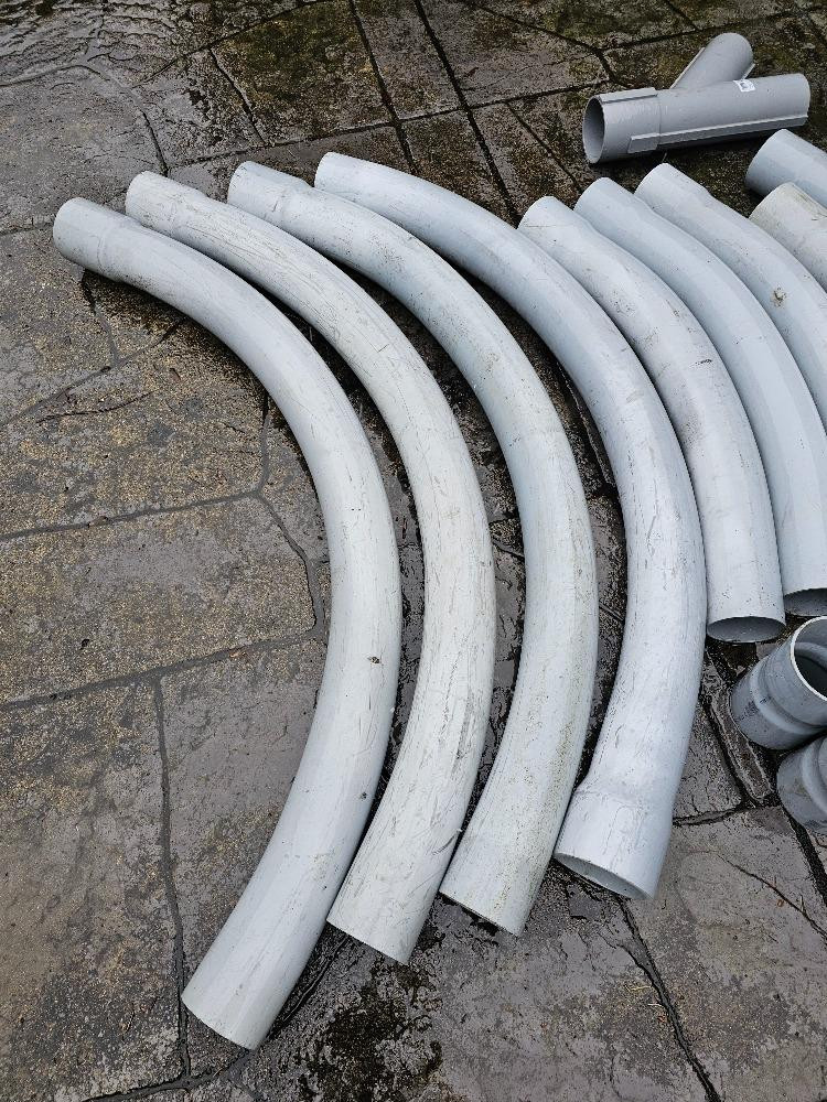 Various 4" Schedule 40 PVC Bends, Couplers, & A Split Y Pipe (4) 90° (7) 45° (19) Couplers (1) 4" Split Y