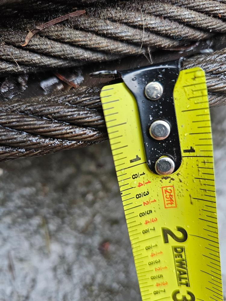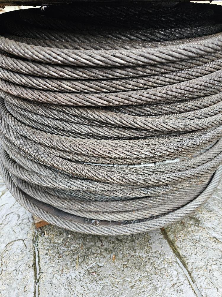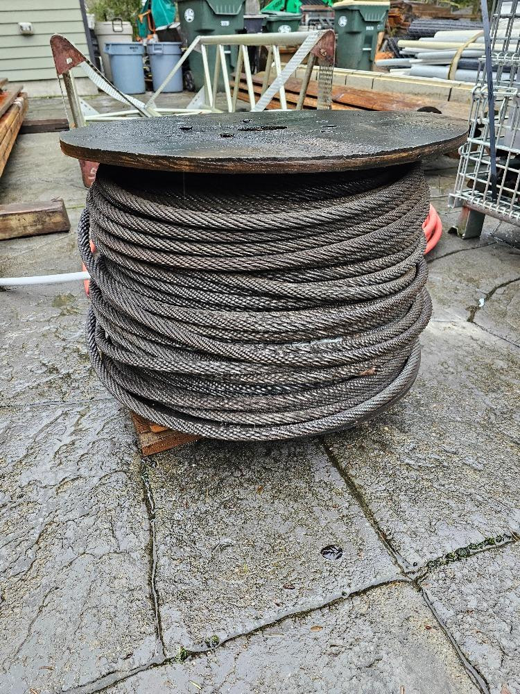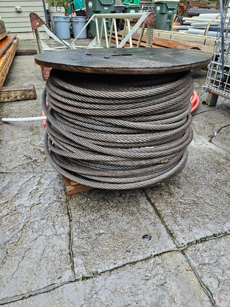 Spool Of Steel Braided Cable Braided Cable is 5/8" Spool appears full Wood spool is 23.5" across and 15.5" wide Very heavy!