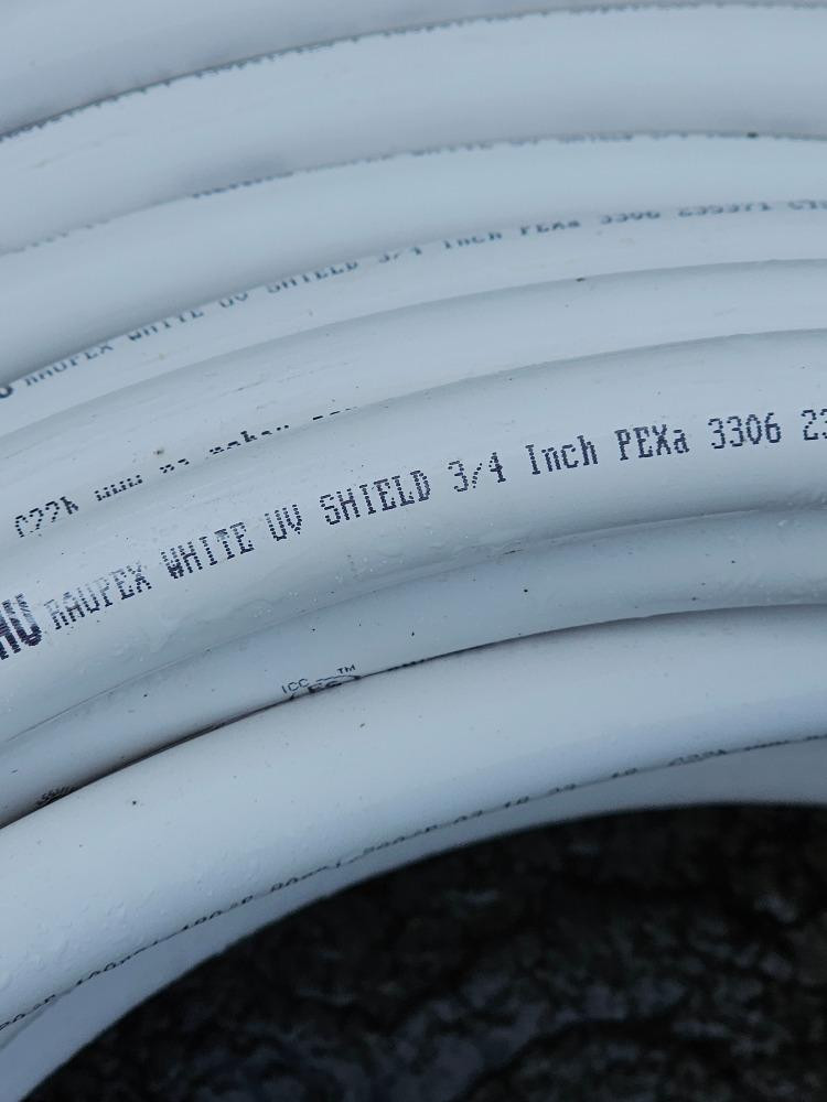 Red & White 3/4" PEX Pipe & Red 1/2" PEX White 3/4" PEX is the largest roll of the three The 3/4" red and 1/2" red PEX are approximately the same length