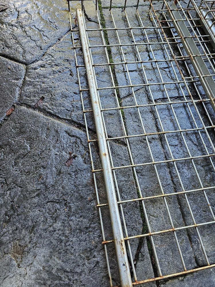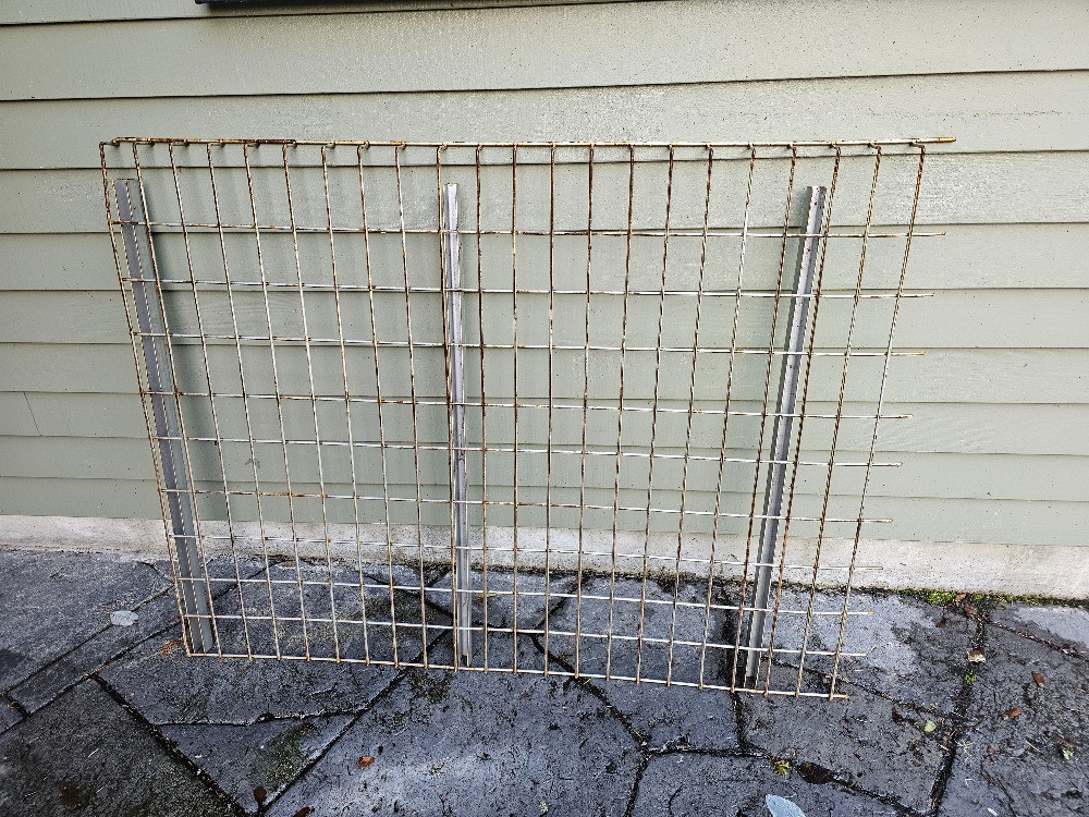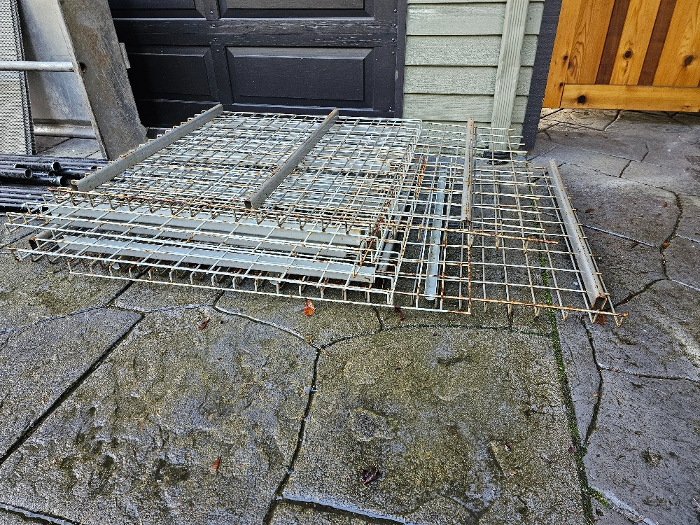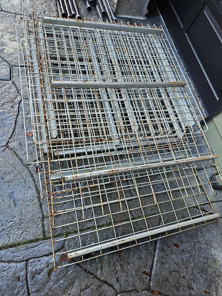 (6) Metal Grid Shelving Pallet Racking Smallest 41" x 45.5" Largest 41" x 70" Metal bars support the load A little rusty but very usable