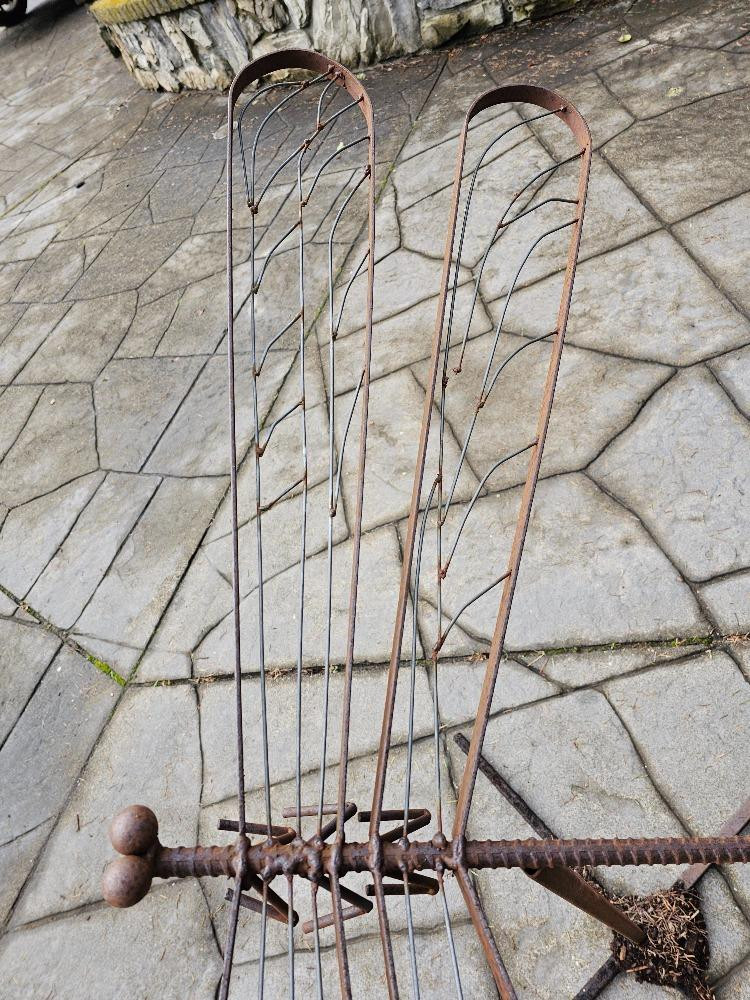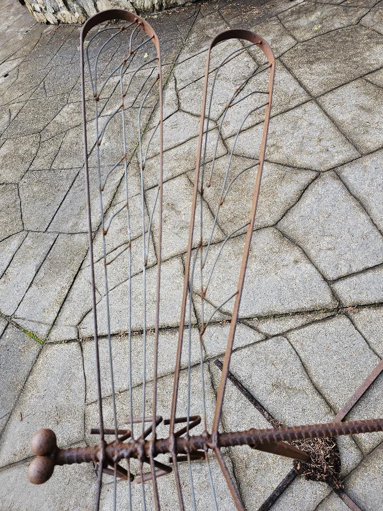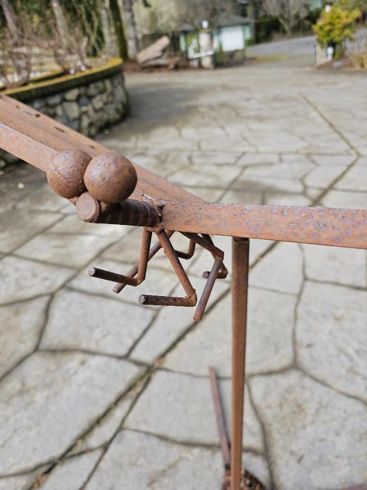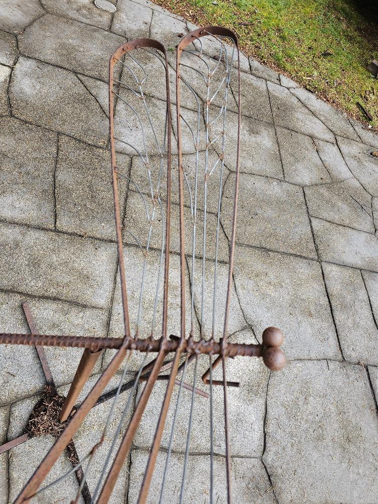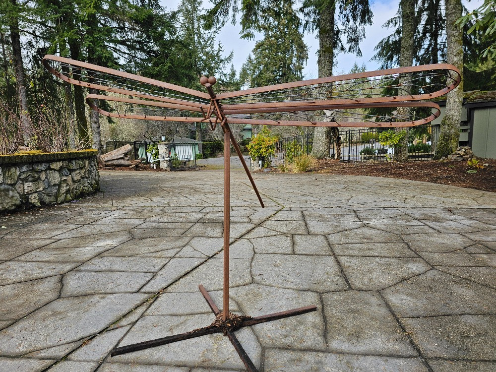 Large Custom Metal Dragonfly Sculpture Made of welded metal bar with a body of rebar 36"T x 57"W x 45"L Comes apart, stand & Dragonfly sculpture Very unique piece of yard art!
