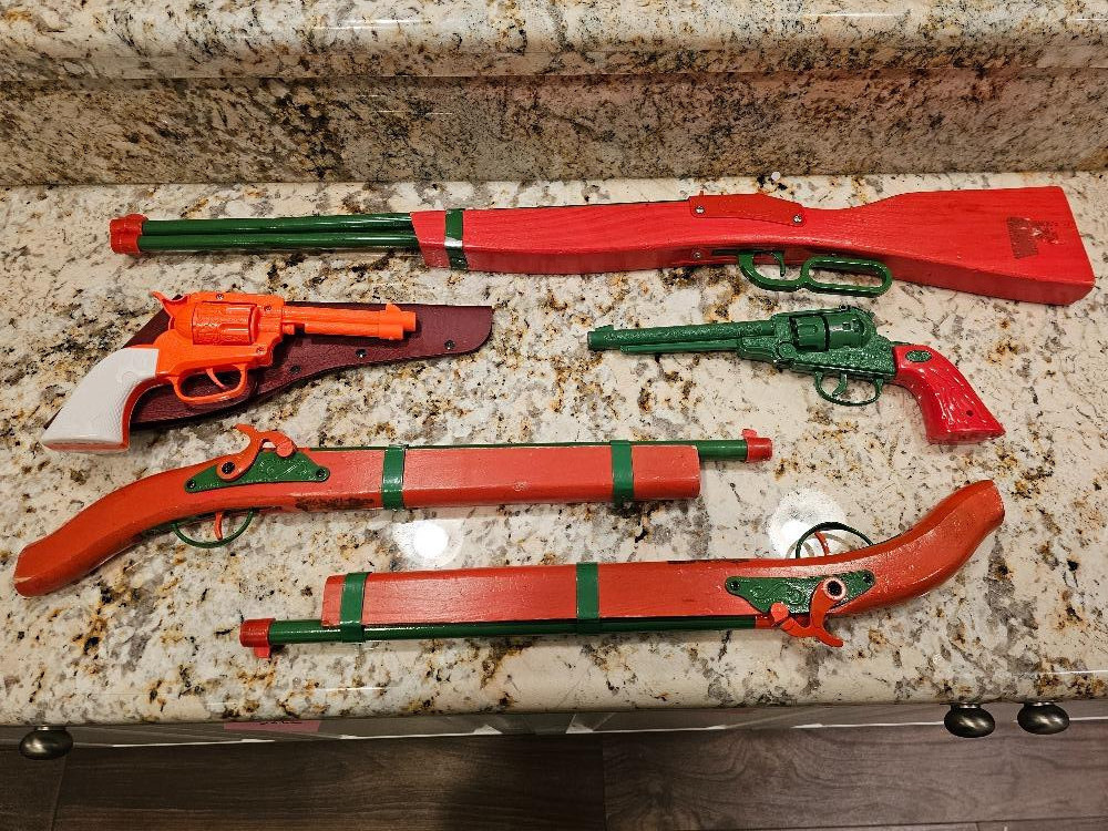Wood & Metal Toy Cap Guns Lever-action rifle Revolver (2) pirate-style Plastic cap gun with vinyl holster