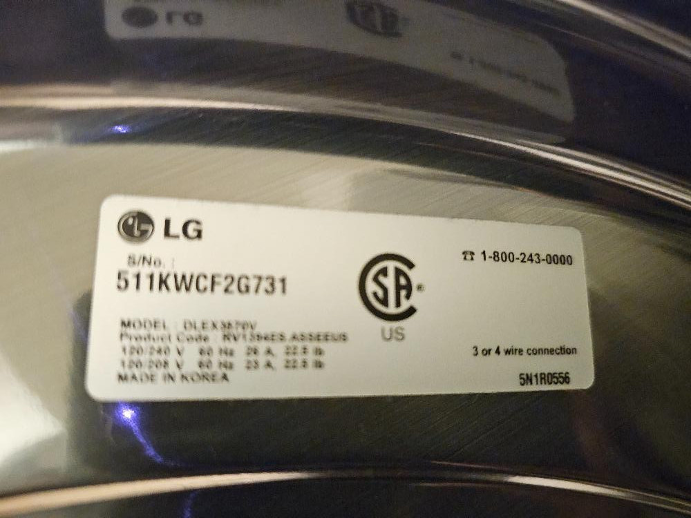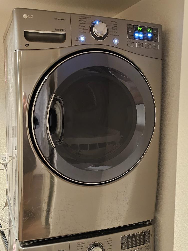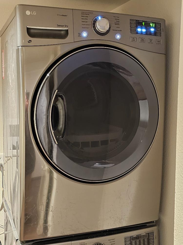 LG TrueSteam SensorDry Electric Dryer LG Model #511KWCF20731 39"T x 26.5"W x 30.5"D Tested - Works Currently stacked on matching washing machine, owner states washing machine doesn't work!