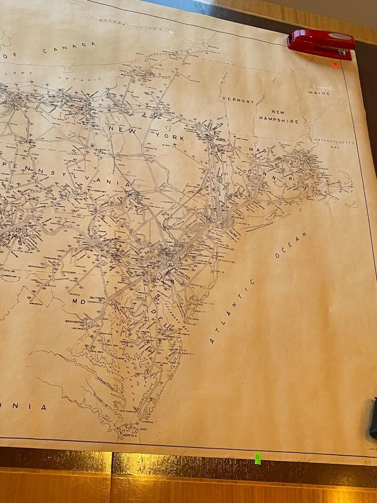 (5) Large Original Railroad System Track Maps 1976 USRA Conrail System Track Map 1961 Chicago Terminal District 1965 Southern Pacific Lines - Cotton Belt Army Map Service: 1957 Railroad Map Of The NE United States 1957 Railroad Map Of The NW United States All on rolled paper