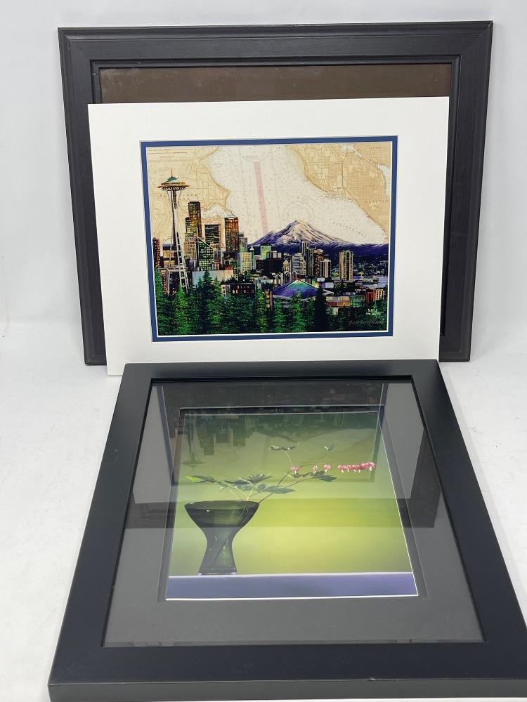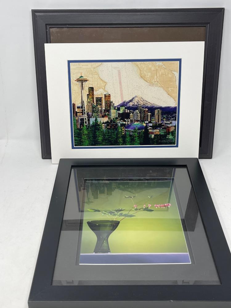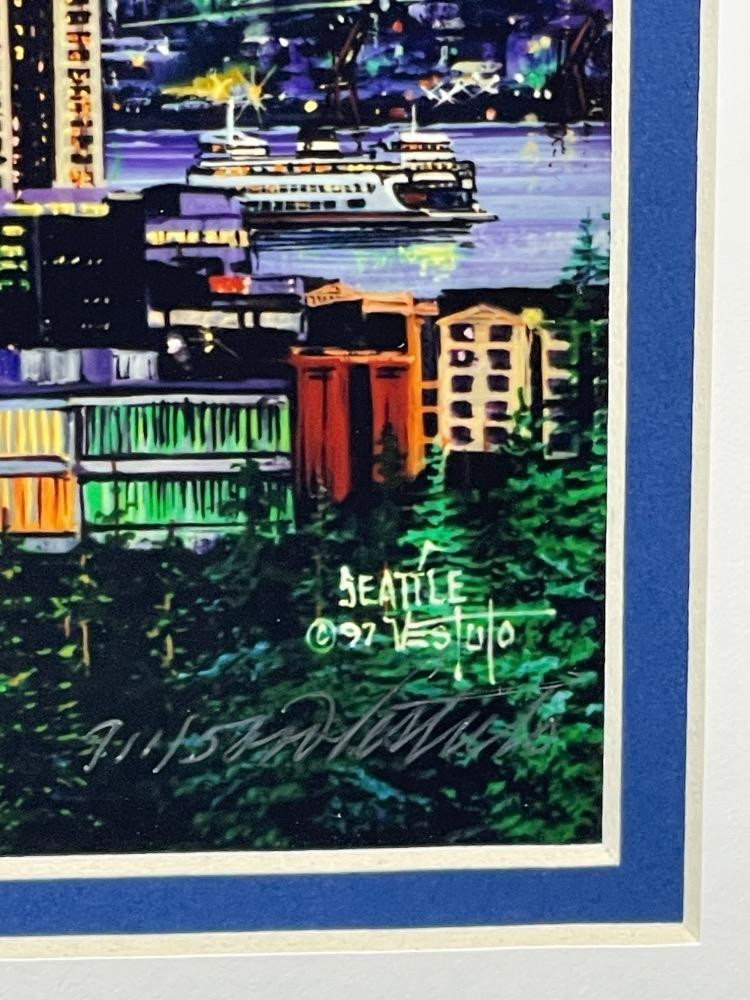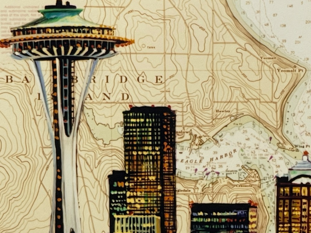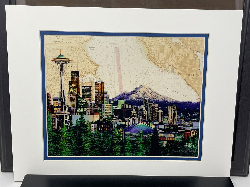 Lot # 246 - Betty Vestuto Chart Painting Seattle Skyline & Bleeding Heart