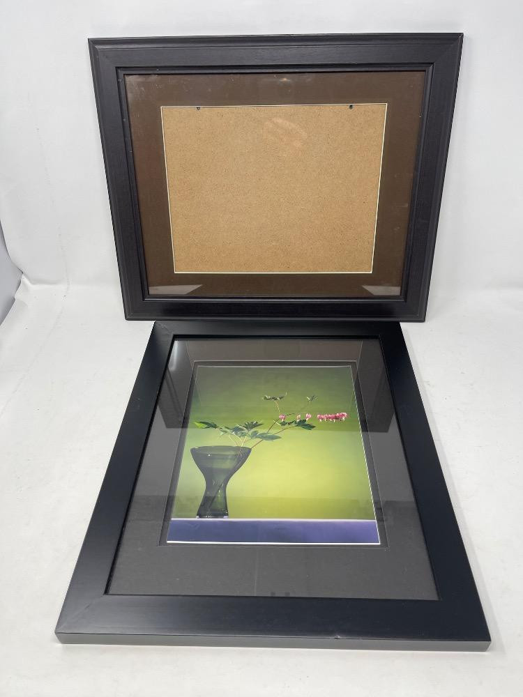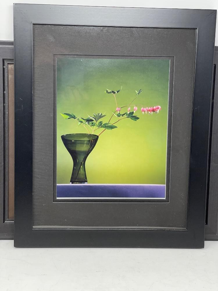 Bleeding Heart is 13”x16” Empty frame is 13.75”x16.5” and the matted photo fits this frame.