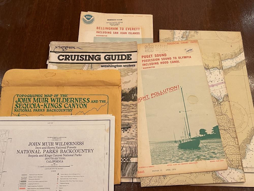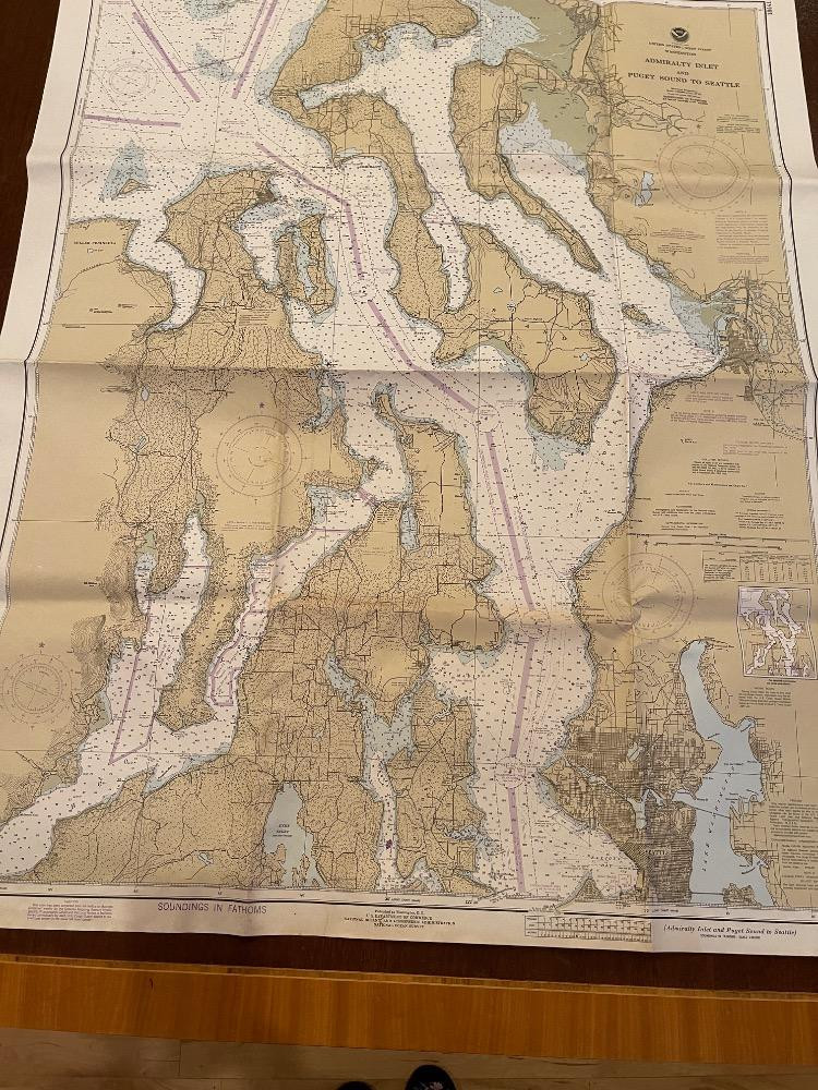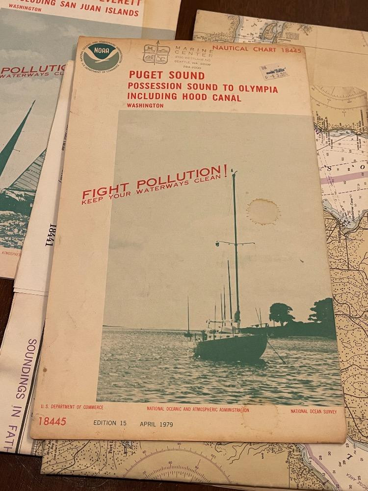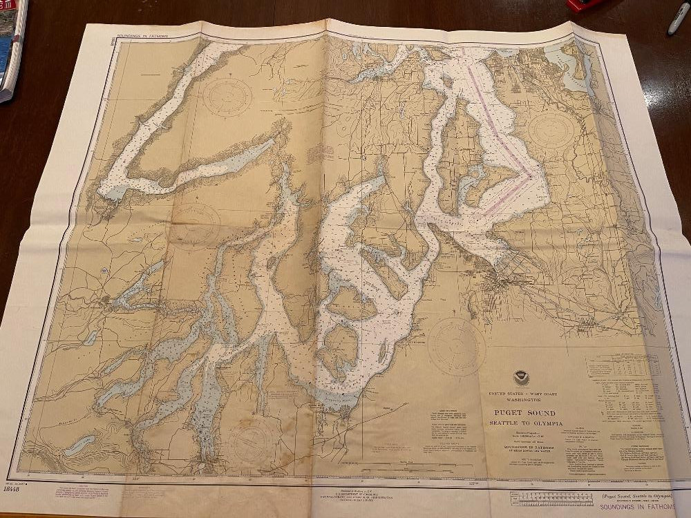 Vintage Washington Waterways NOAA Maps 1979, 1981, 1982, 1985 John Muir Wilderness Map includes a Wilderness Travel Tips on Trail Etiquette. The Puget Sound From Olympia to Seattle is the largest map at 43.5”x35”