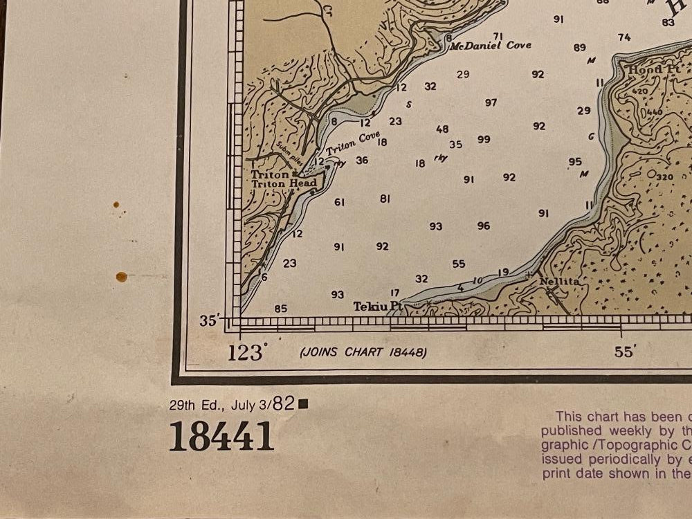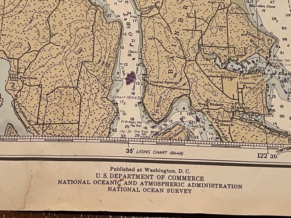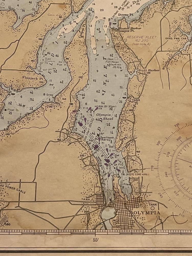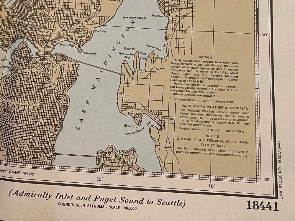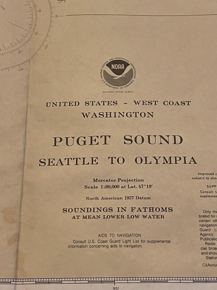 Vintage Washington Waterways NOAA Maps 1979, 1981, 1982, 1985 John Muir Wilderness Map includes a Wilderness Travel Tips on Trail Etiquette. The Puget Sound From Olympia to Seattle is the largest map at 43.5”x35”