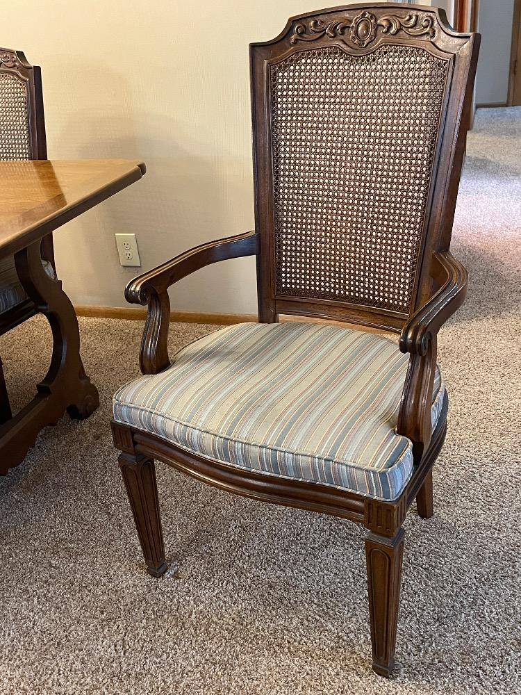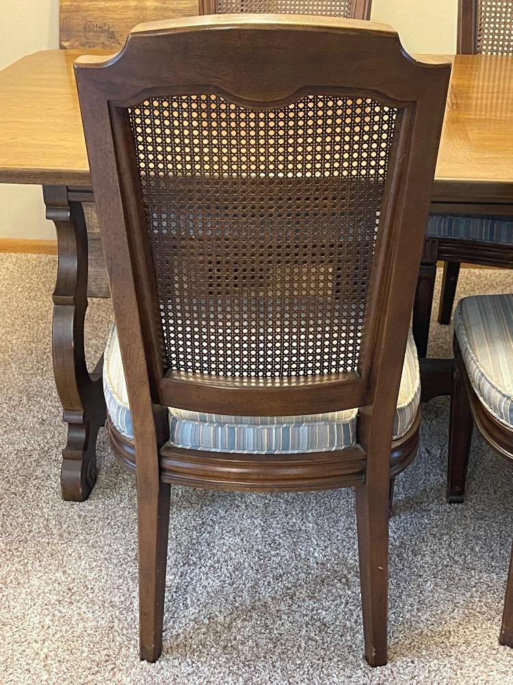 Lot # 2 - 6 Cane Back Chairs - Stunning Scroll Table Base Dining Set + 2 Leaves