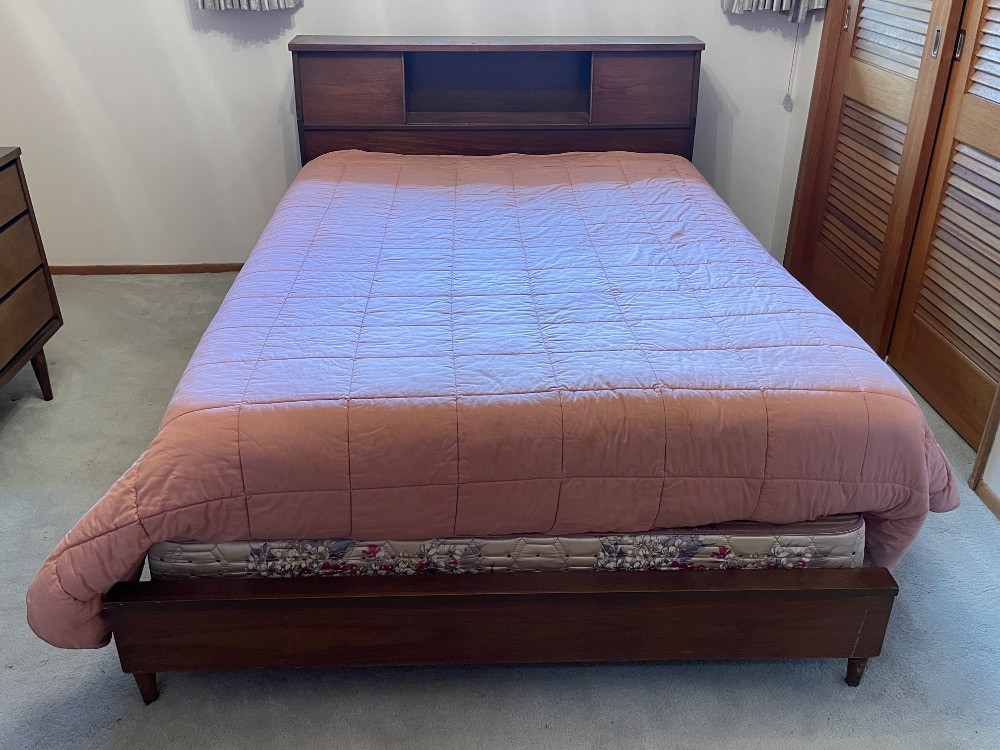 Lot # 8 - Mid-Century Full Bed - Mattress and Bedding