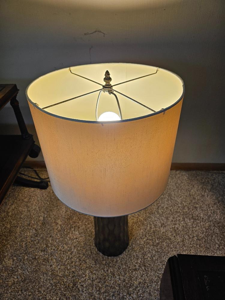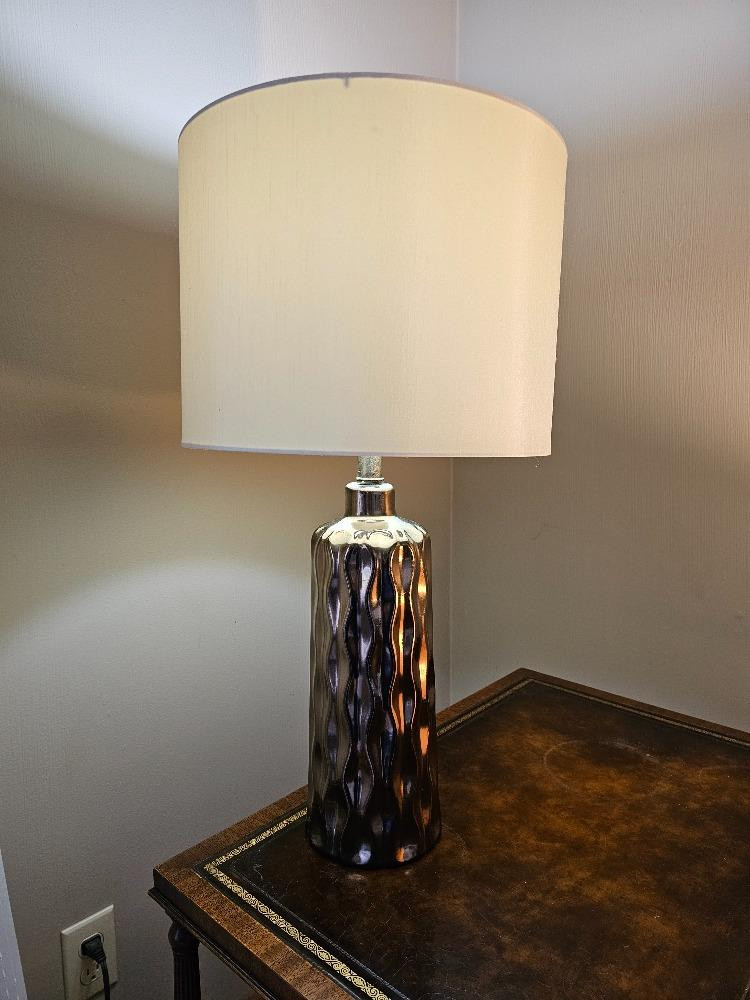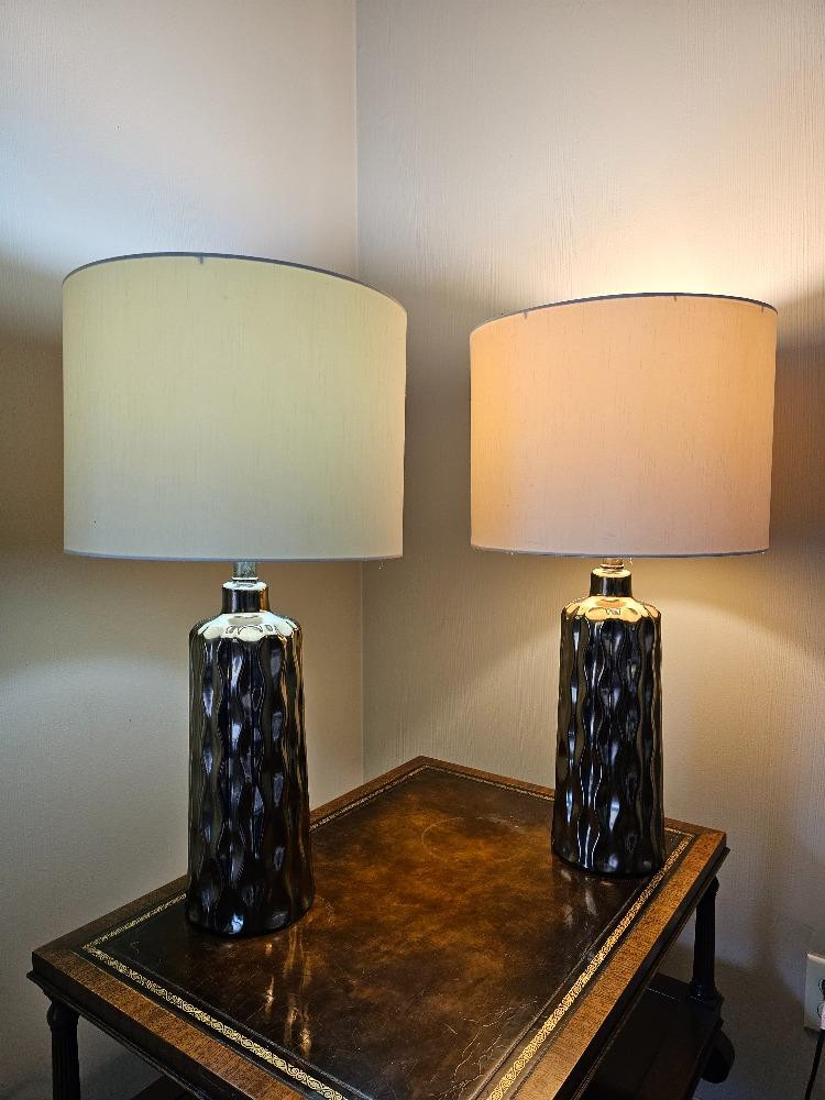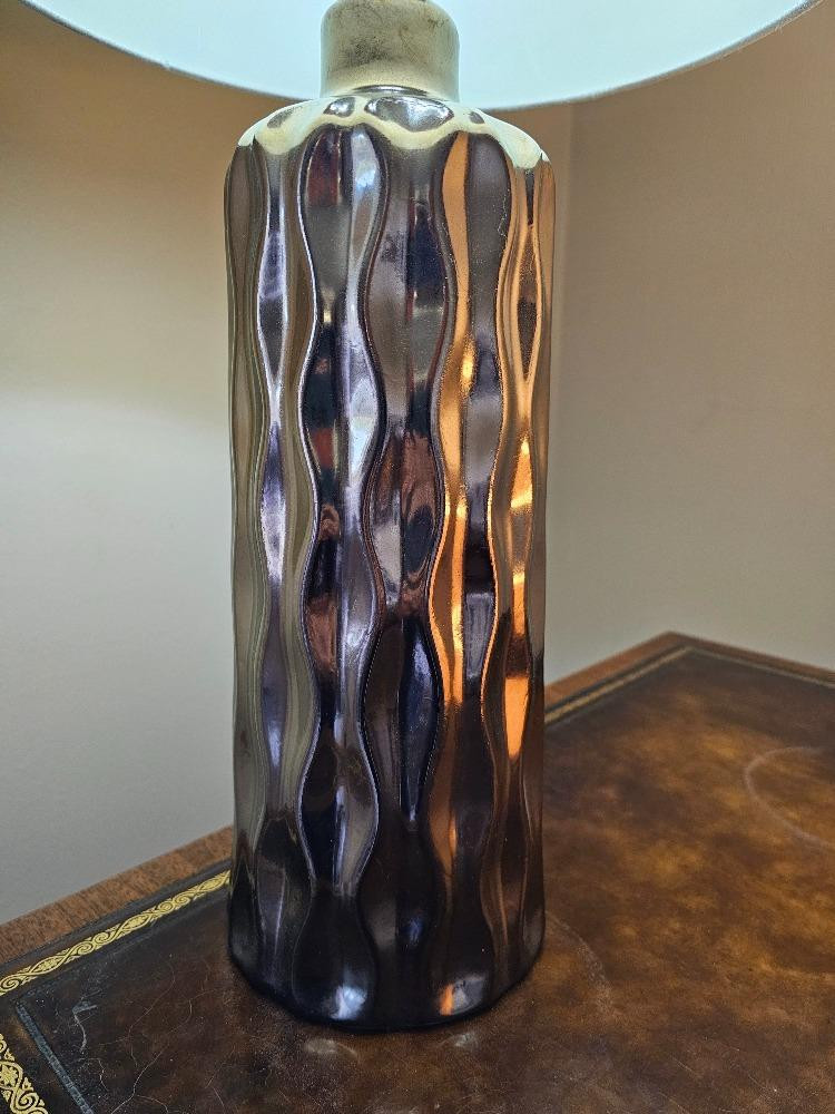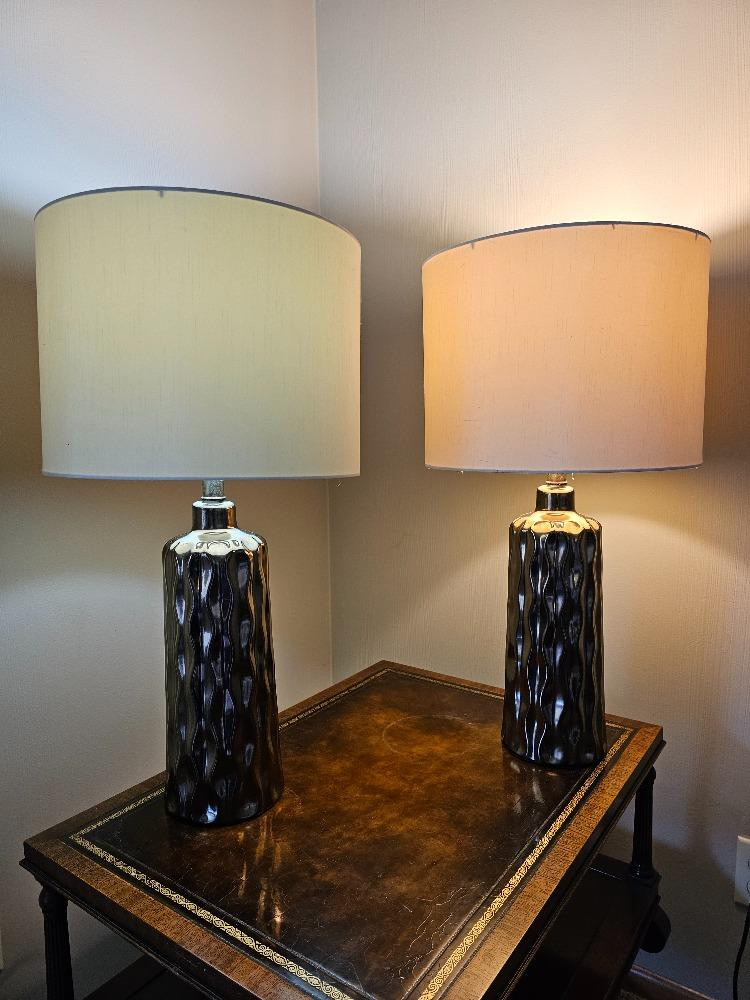 Pair Of Modern Rose Gold Ceramic Lamps The shades are identical. The light bulbs are not. 27"T x 14"W Both Tested - Both Work!