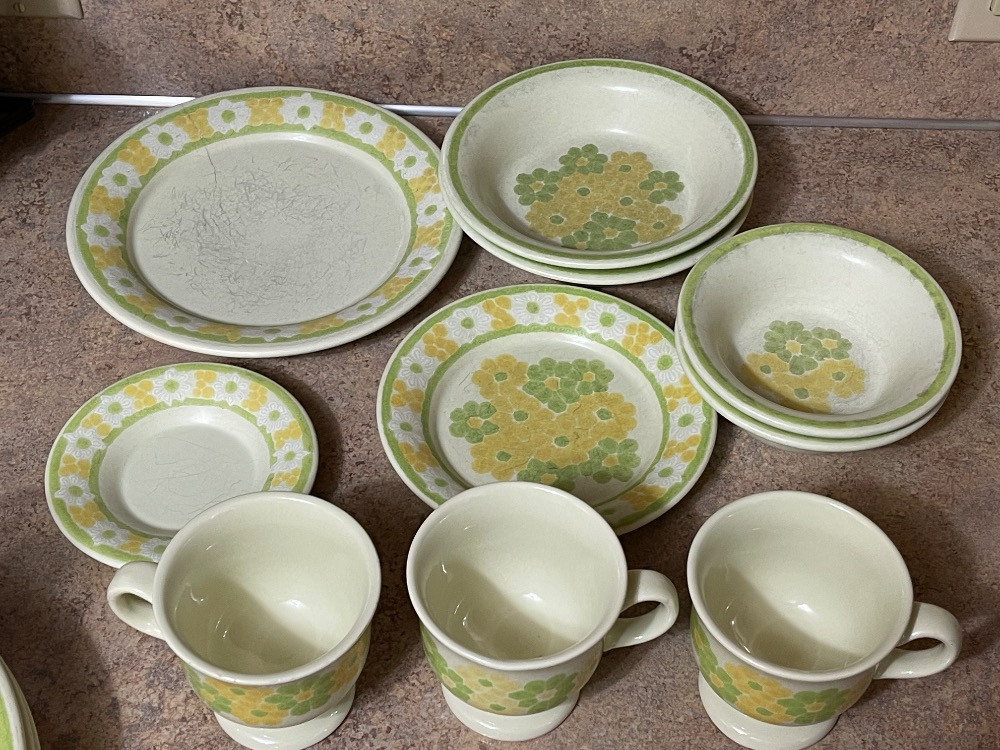 Lot # 26 - (16) Pcs Franciscan Earthenware White Yellow & Green Daisies