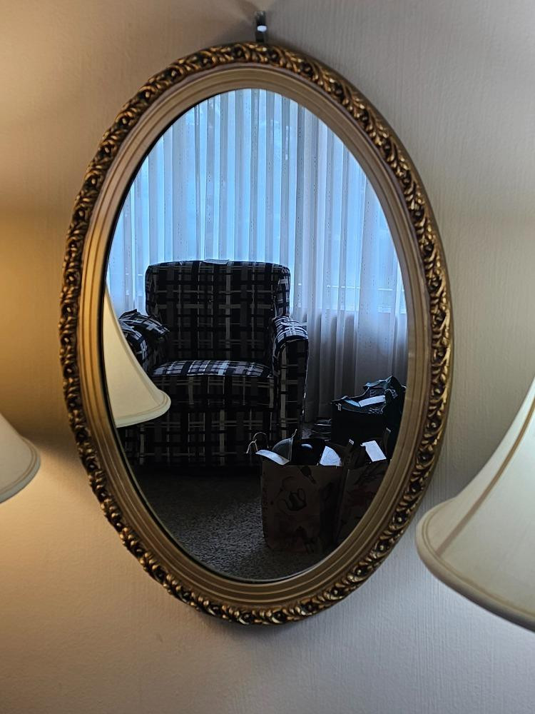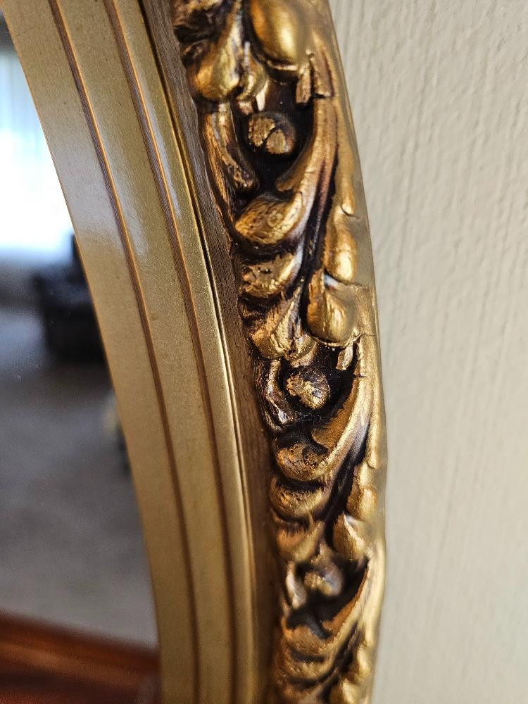 Gilded Frame Oval Plate Wall Mirror By J.A. Olson Company of Winona, Wisconsin 27.5"T x 19.5"W Beautiful condition!