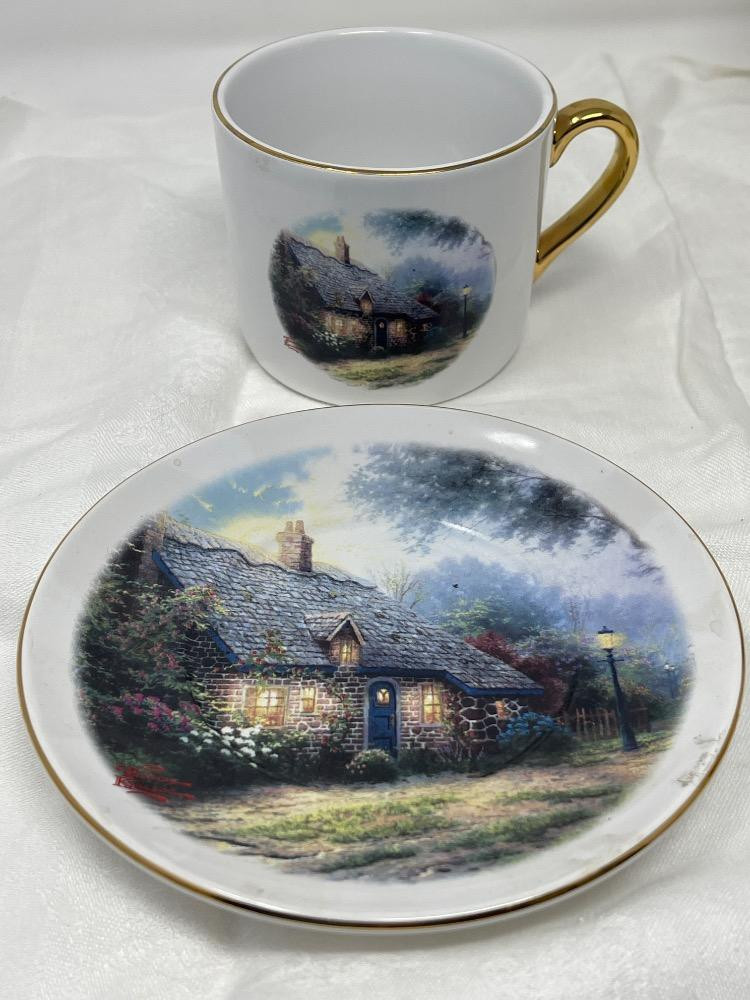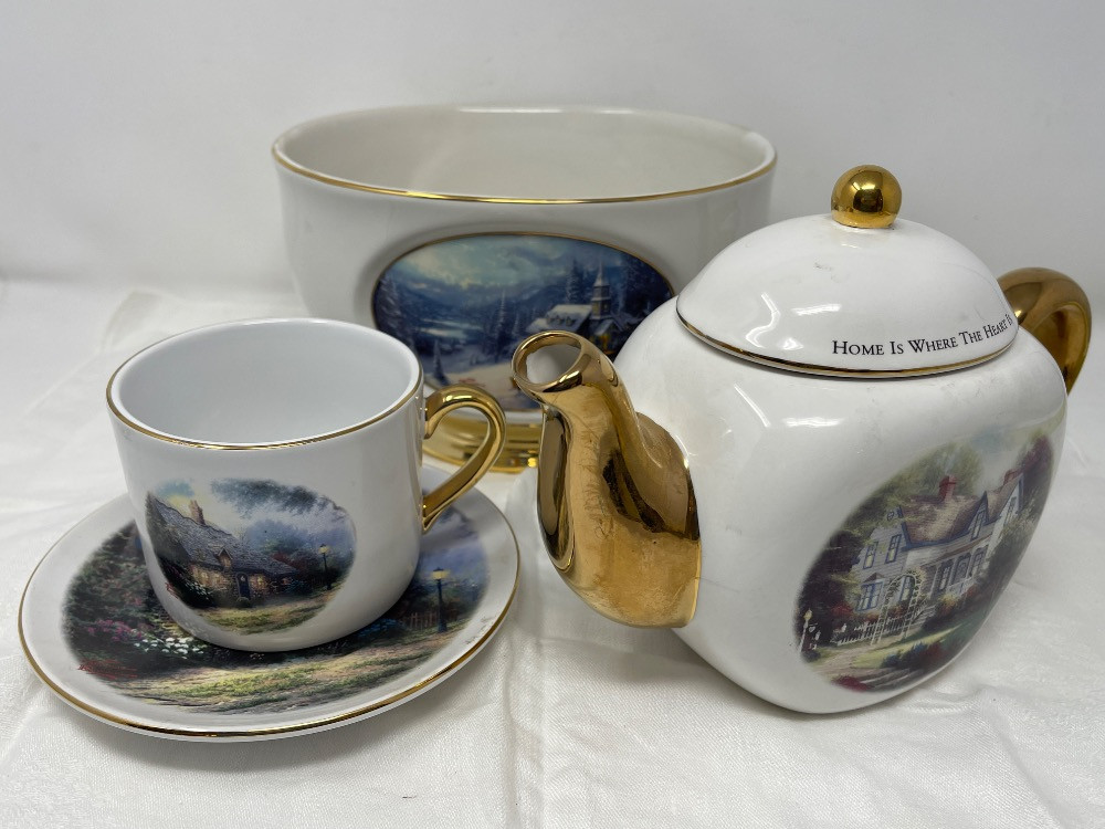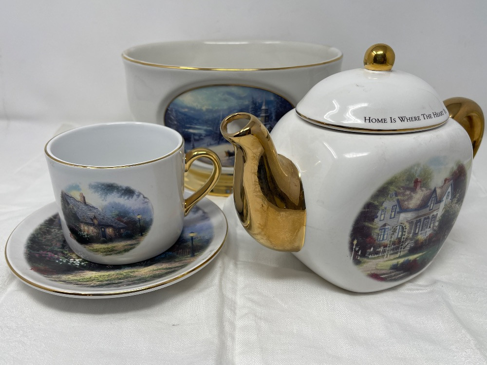 Lot # 34 - Thomas Kincaid Teapot - Cup & Saucer & Bowl
